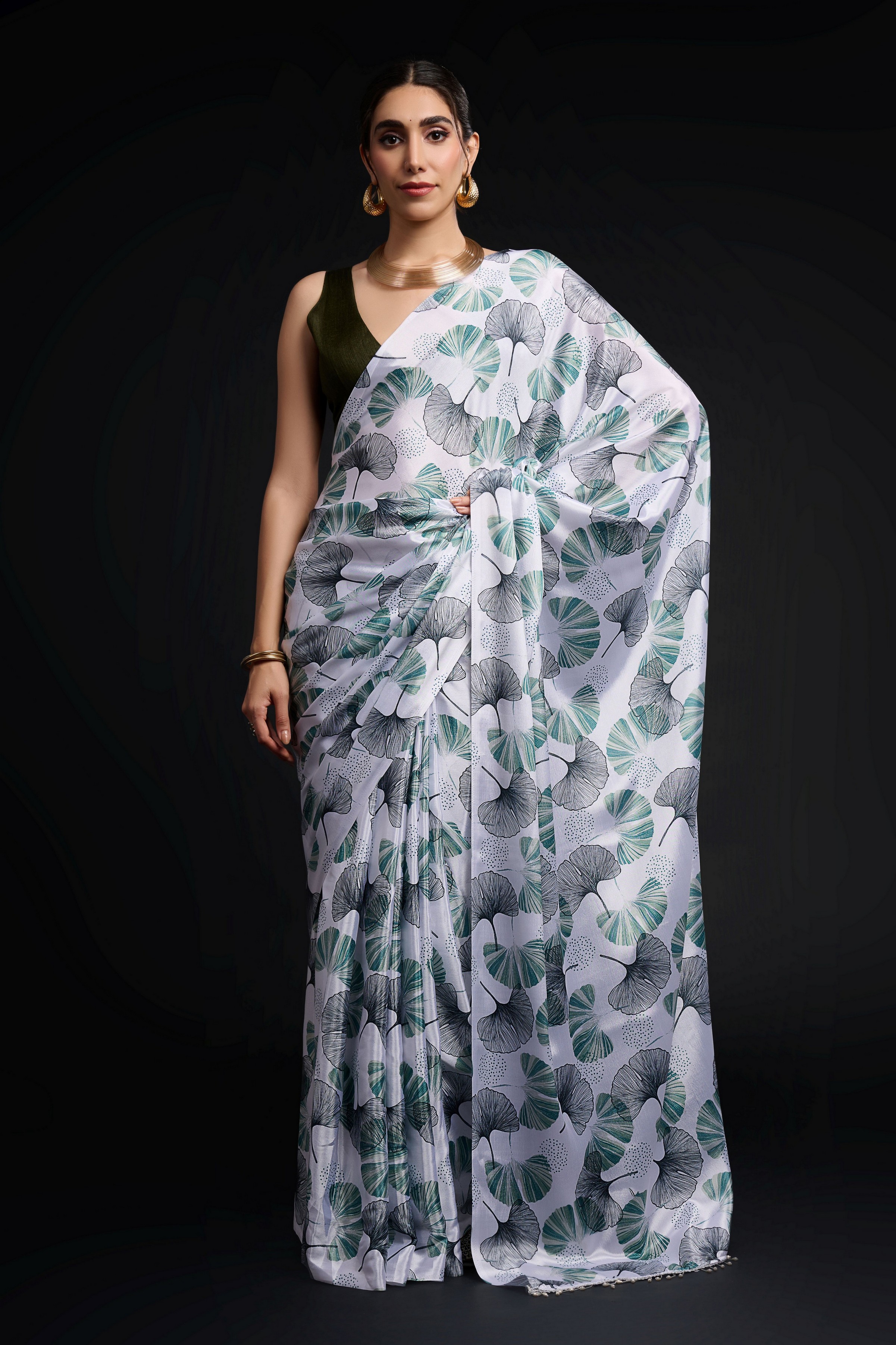 Green Color Chinon Fabric Designer Digital Printed Ready To Wear Saree