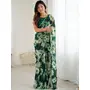 Green Color Georgette Fabric Designe Floral Printed Bollywood Style Saree