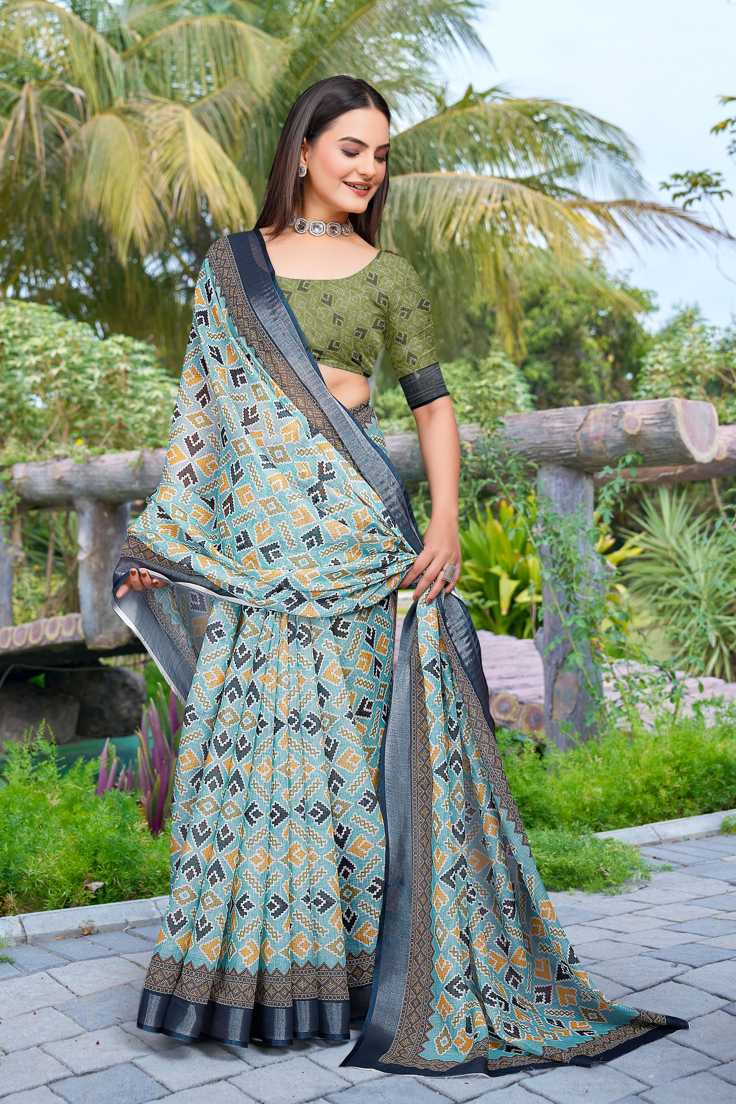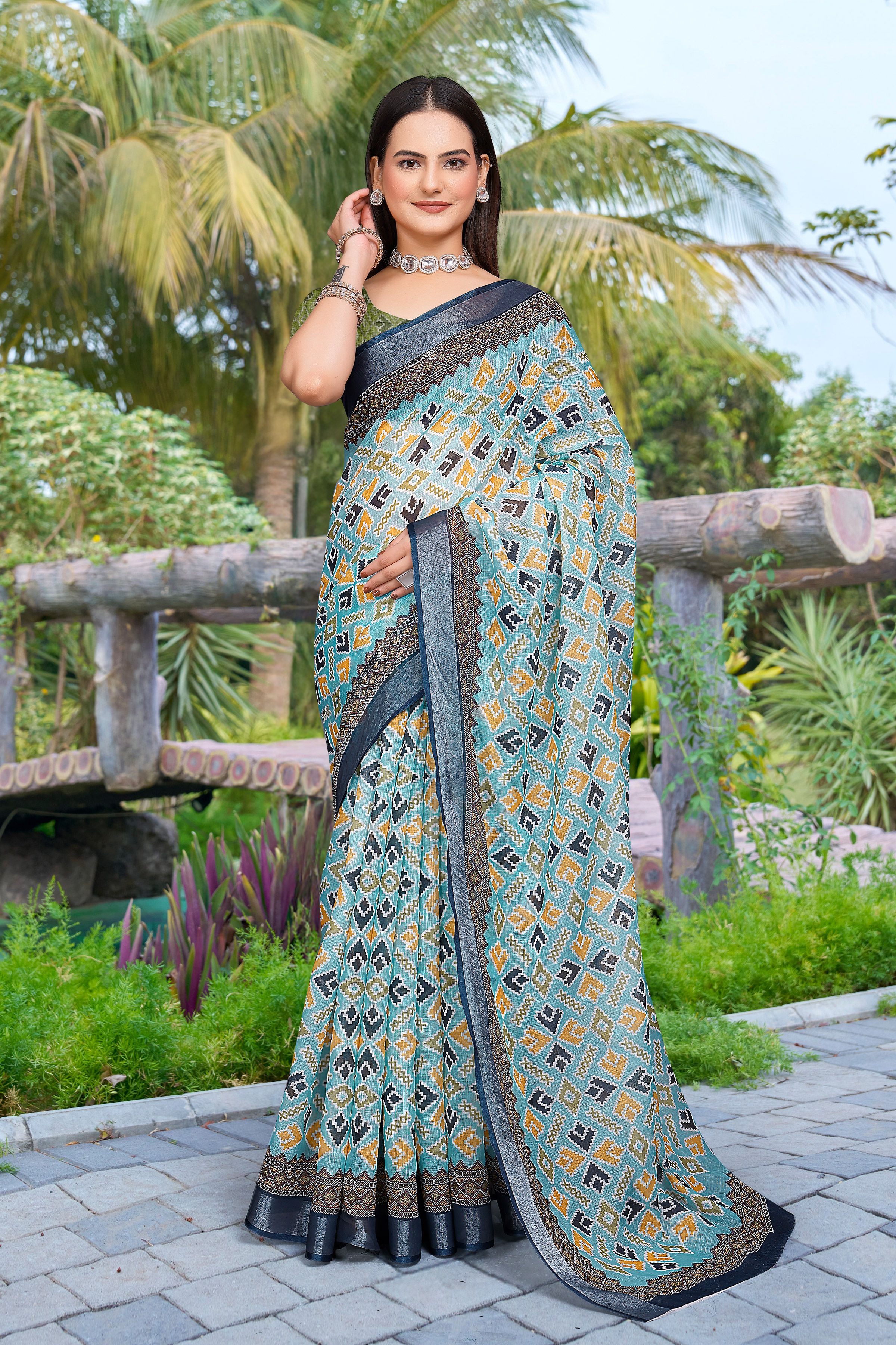 Look These Festive Saree in Fine Colored.These Saree Are Linen Cotton And Blouse is Fabricated On Linen Cotton Pair.Its Beautified With Woven Jari Border With Designer Digital Printed.