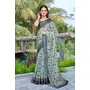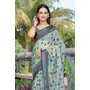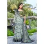 Green Color Linen Cotton Fabric Woven Border Designer Printed Saree