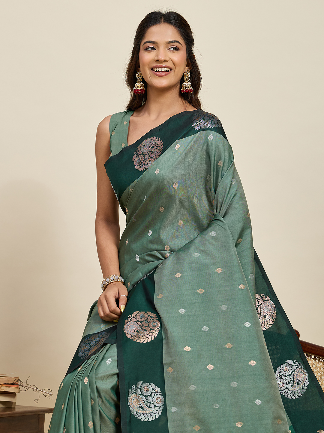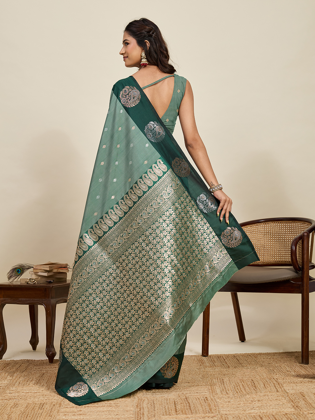 Green Color Soft Silk Fabric Woven Jari Designer Ceremonial Partywear Saree