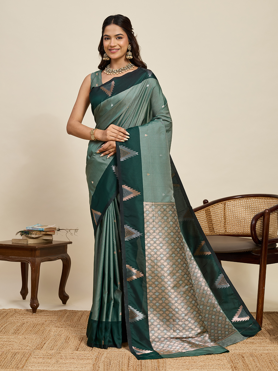 Attractive This Party Wear Saree Paired With Blouse.This Saree And Blouse Are Soft Silk Fabric With Woven Jari Designer. Buy This Pretty Saree Now.