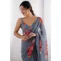Grey Color Beautiful floral Printed Ceremonial Georgette Saree