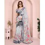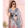 Grey Color Linen Cotton Fabric Festive Looks Printed Saree
