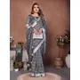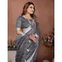 Grey Color Linen Cotton Fabric Woven Checks Designer Trendy Ethnic Saree