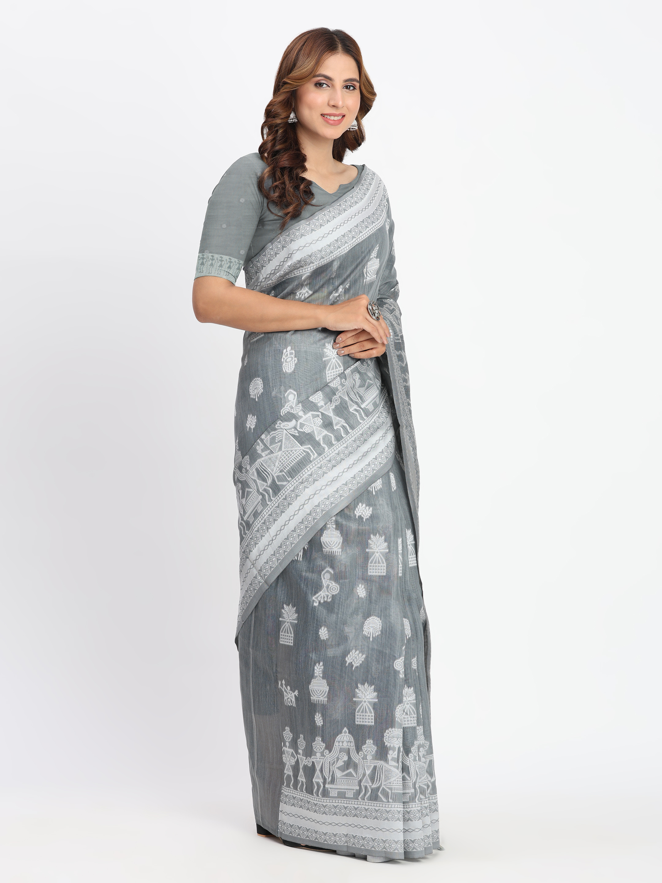 Grey Color Linen Cotton Woven Designer Graceful Ethnic Saree