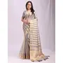 Grey Color Organza Fabric Woven Patta Designer Trendy Ethnic Saree