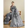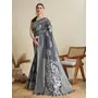 Grey Color Soft Silk Fabric Wevon Flower Designer Stylish Partywear Saree