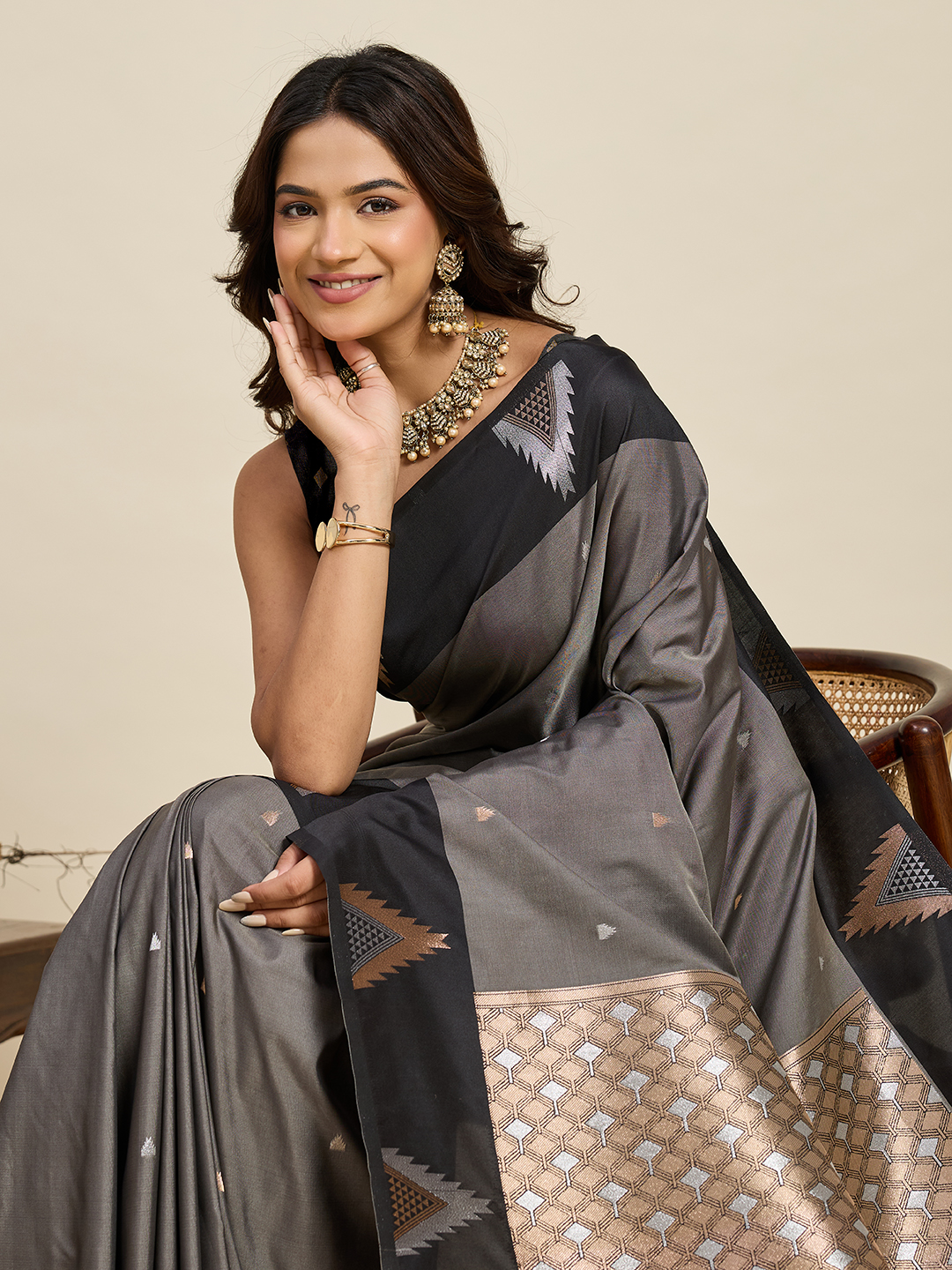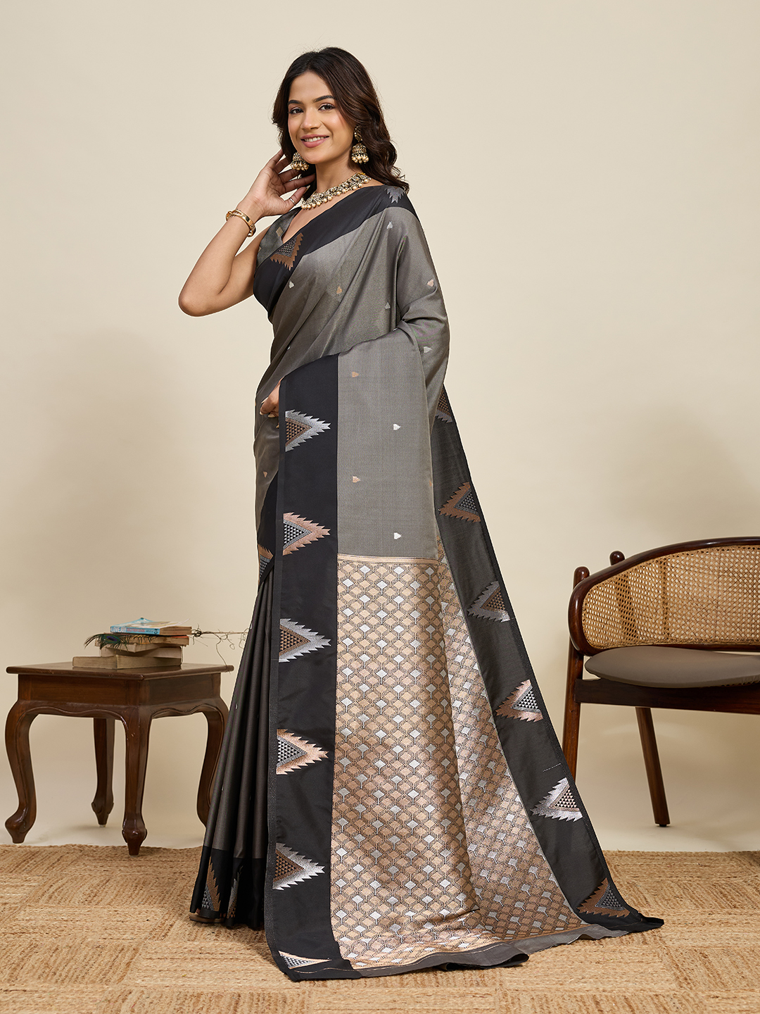 Attractive This Party Wear Saree Paired With Blouse.This Saree And Blouse Are Soft Silk Fabric With Woven Jari Designer. Buy This Pretty Saree Now.