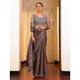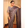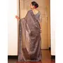 Grey Color Tissue Fabric Embroidery Work Partywear Saree