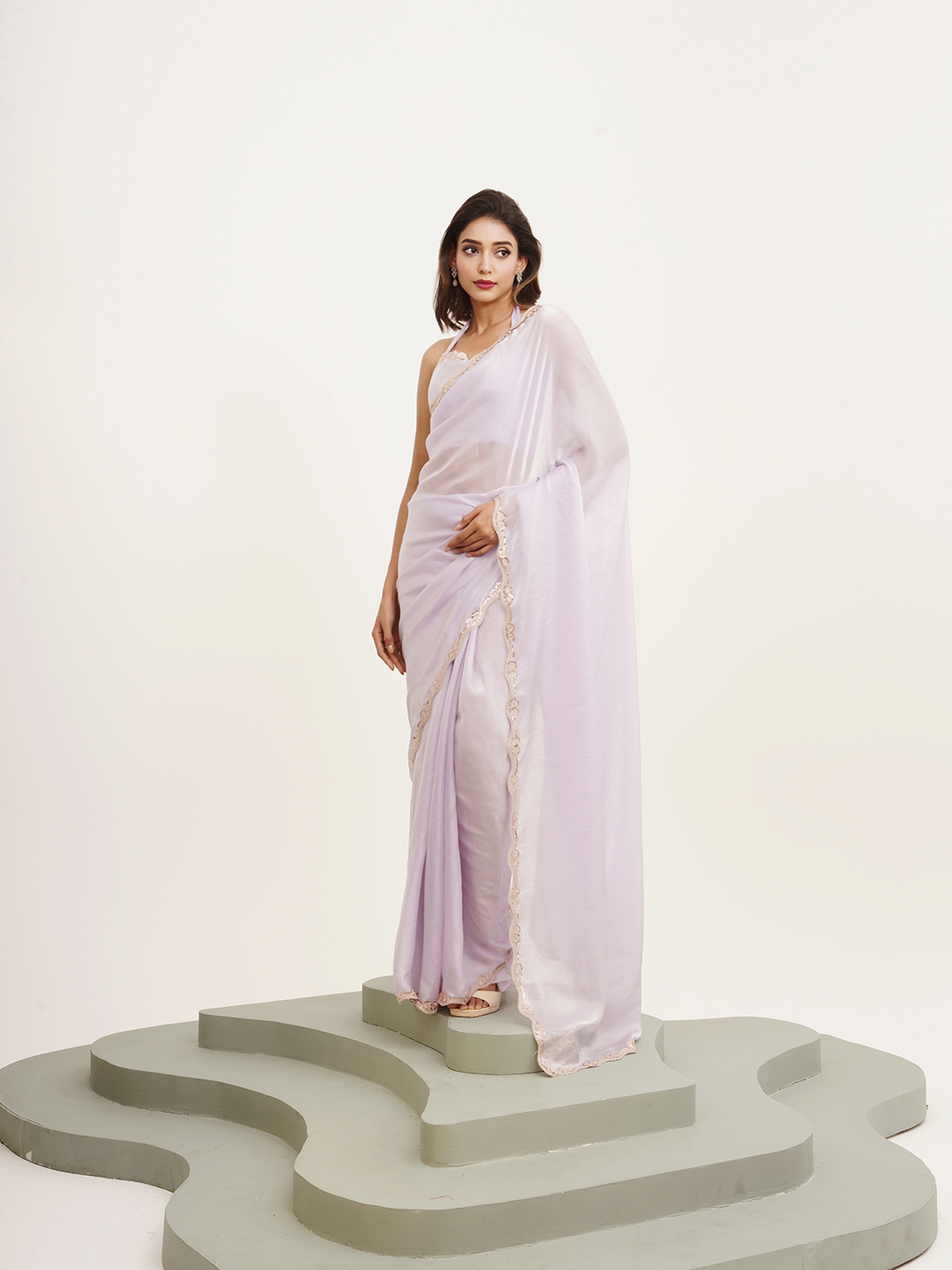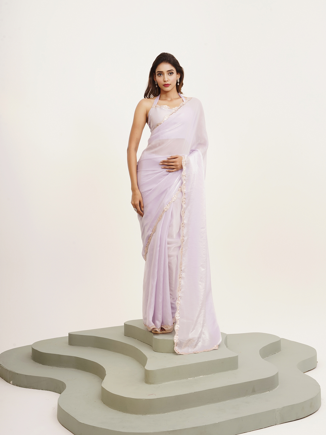 Lavender Color Embellished Sequinned Tissue Saree For Beautiful Partywear Saree