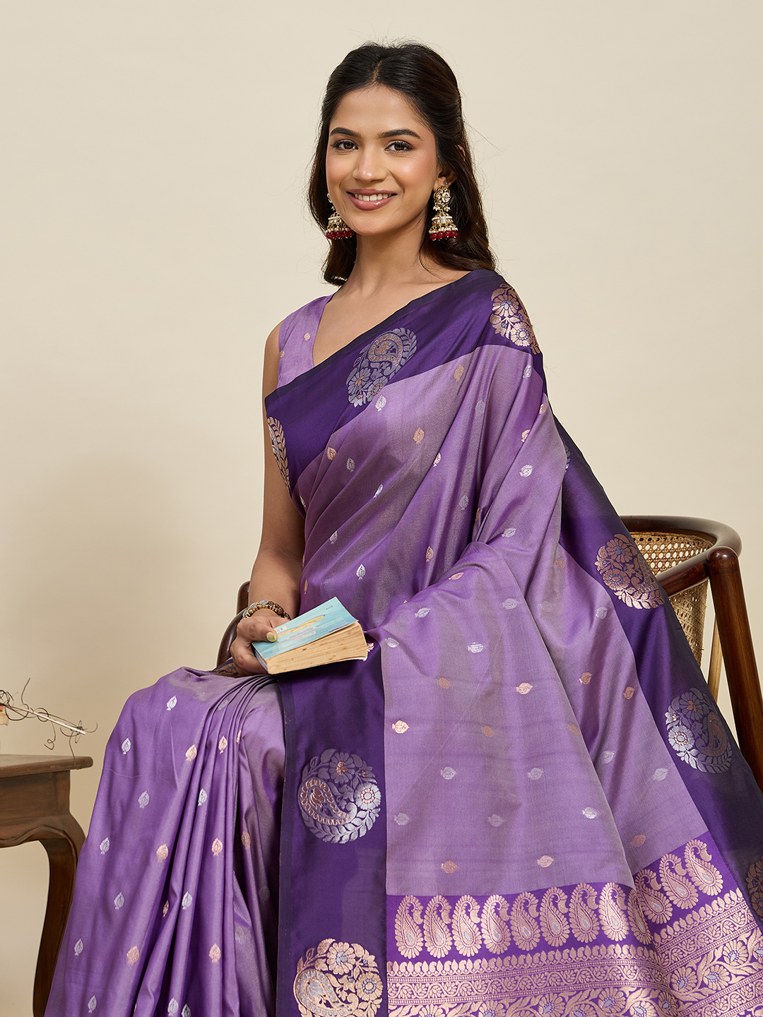 Lavender Color Soft Silk Fabric Woven Jari Designer Ceremonial Partywear Saree