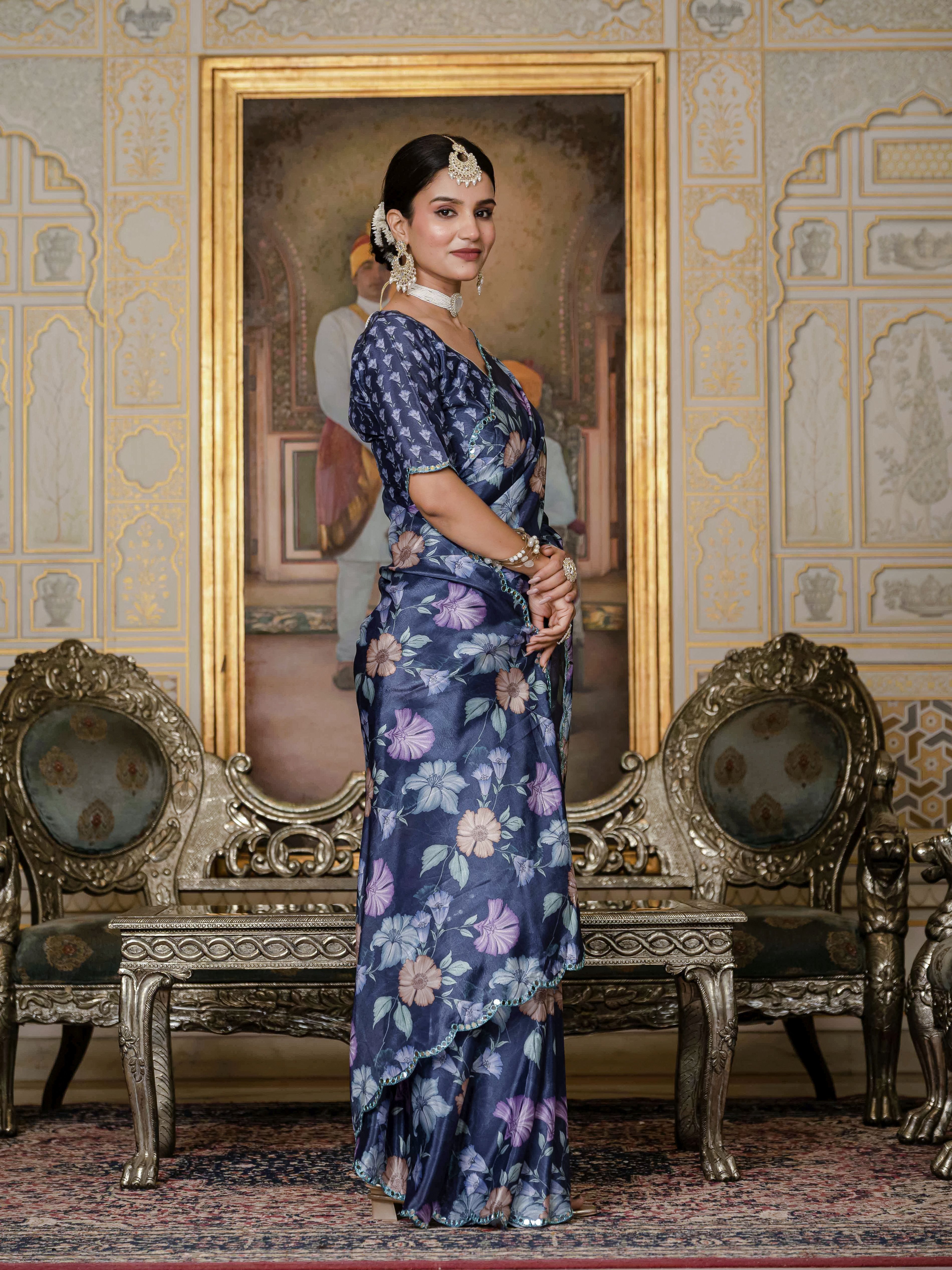 Lavender Color Stylish Ready To Wear Chinon Fabric Partywear Saree