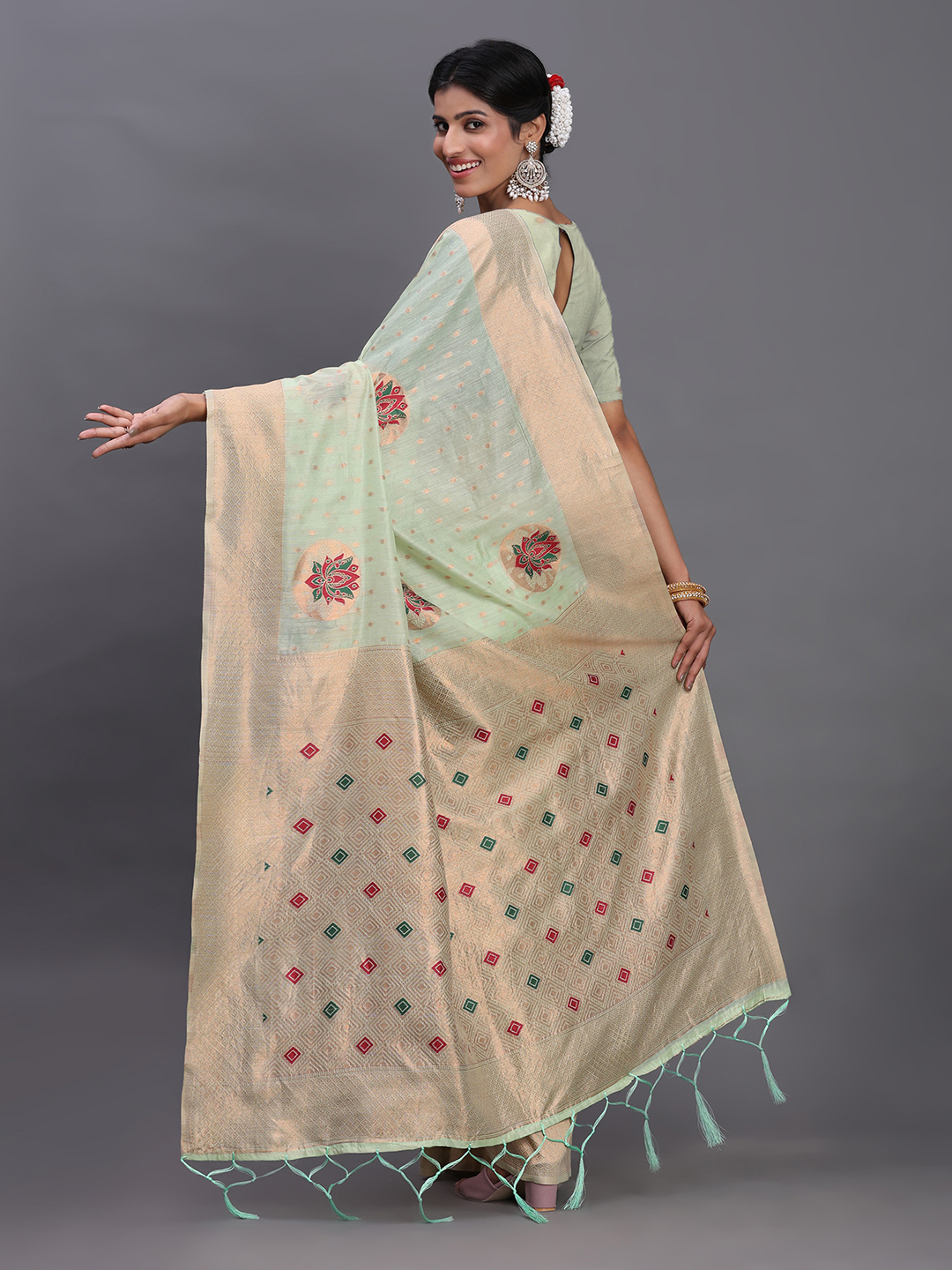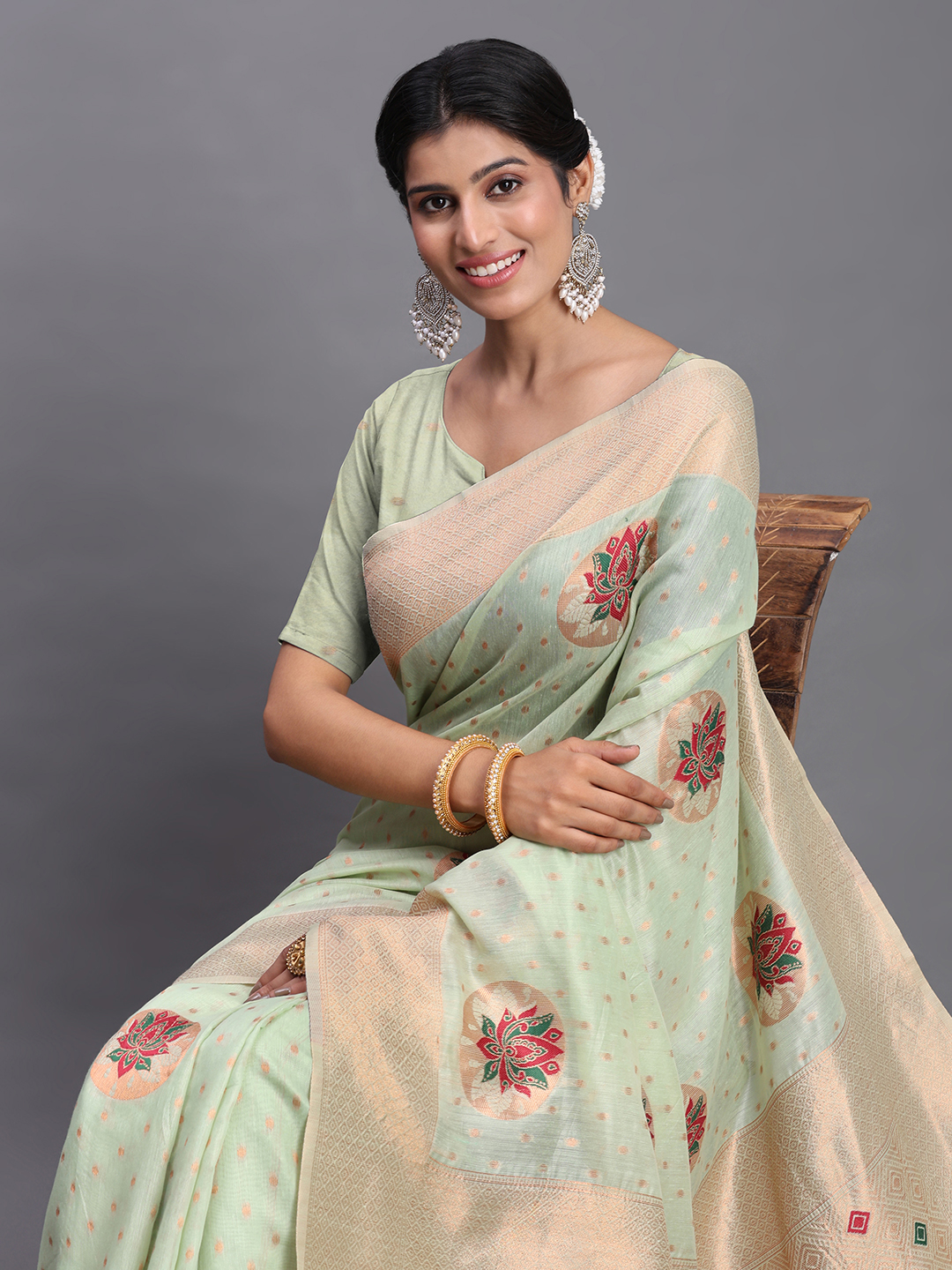 Light Green Color Linen Cotton Woven Designer Festive Wear Saree