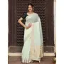 Light Green Color Rich Ceremonial Looks Cotton Based Woven Designer Saree