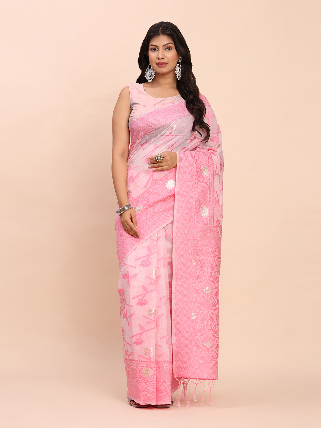 Light Pink Color Linen Cotton Fabric Woven Designer Saree