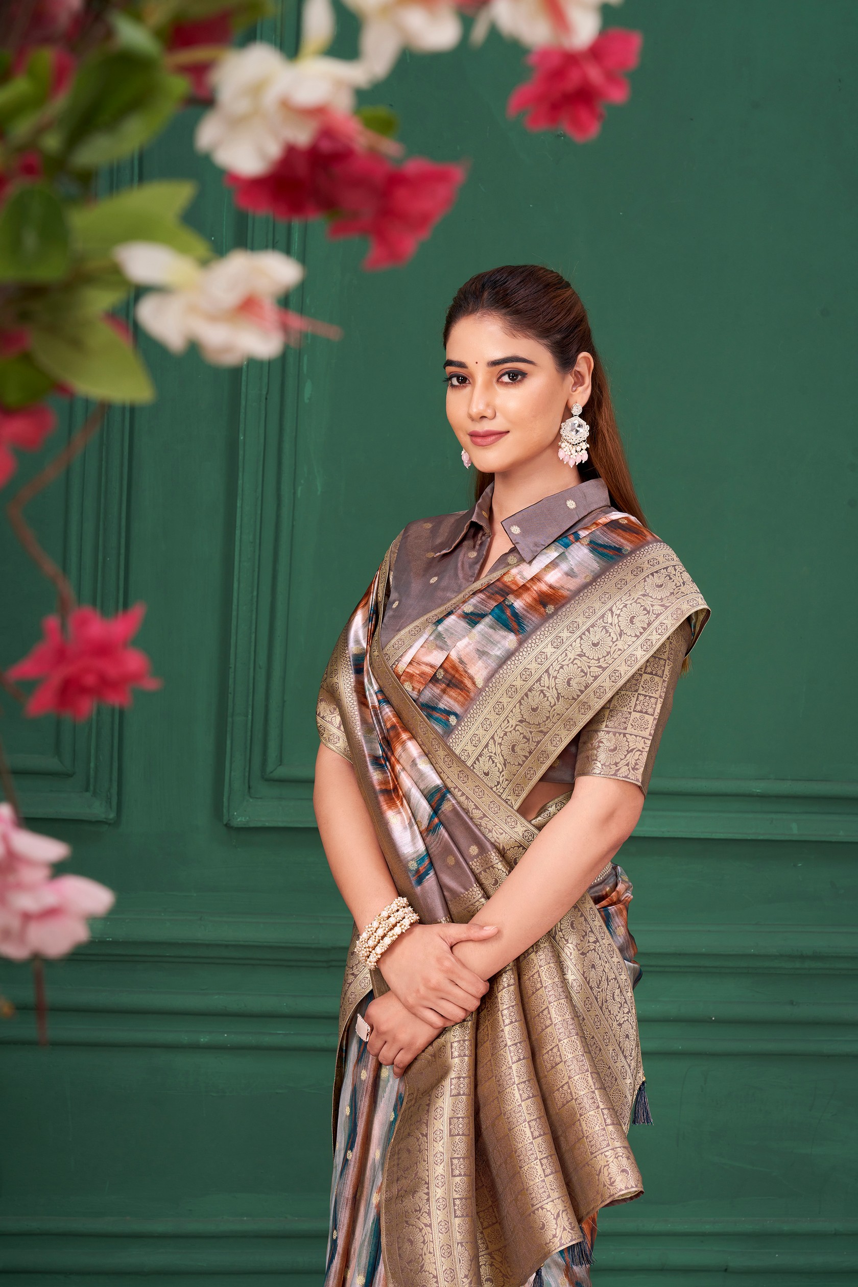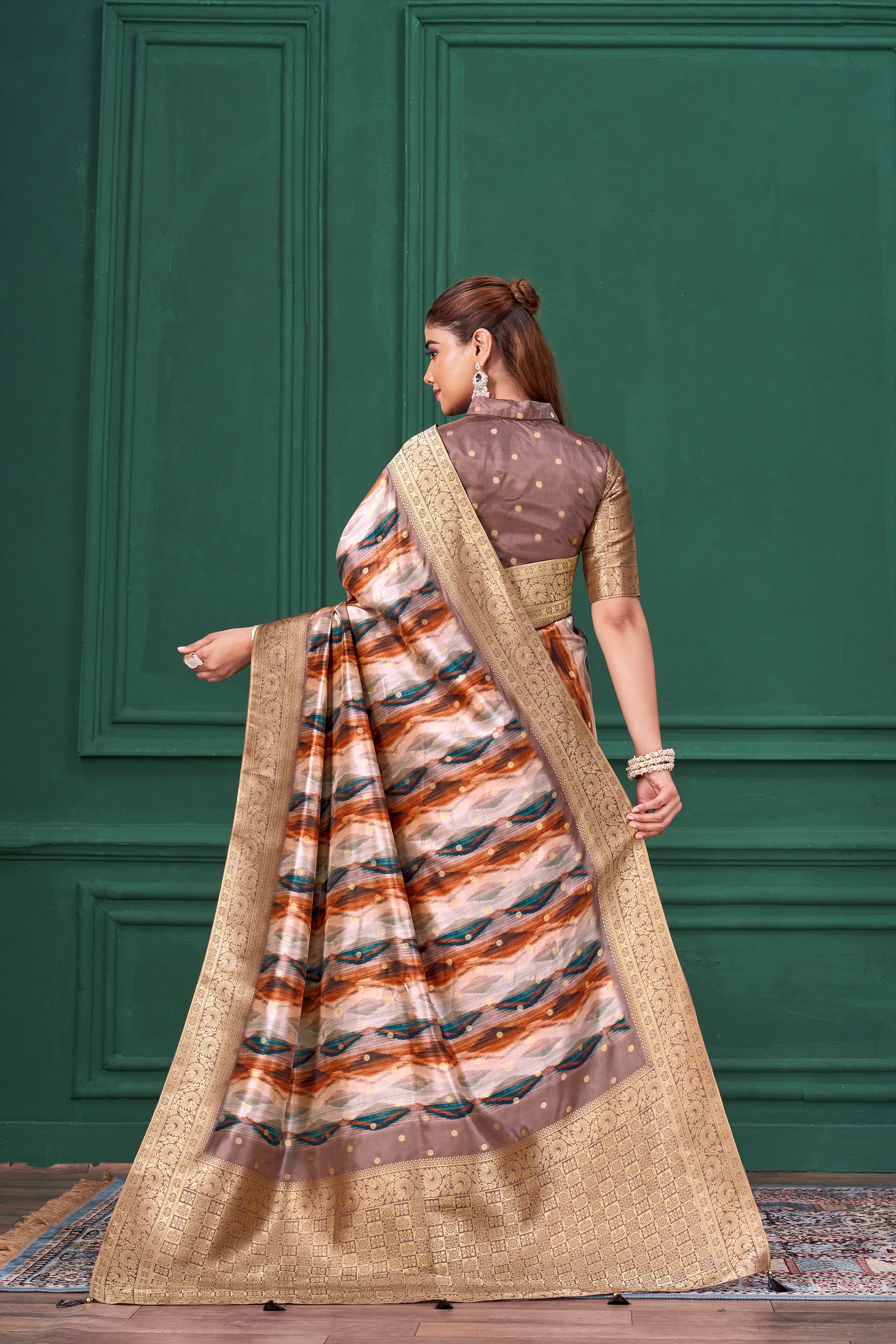 Look Attractive These Designer Party Wear Saree in Fine Colored.These Saree Are Tussar Silk And Blouse Tussar Silk is Fabricated.Its Beautified Woven Jacquard Pallu Border Desiger With Digital Printed.