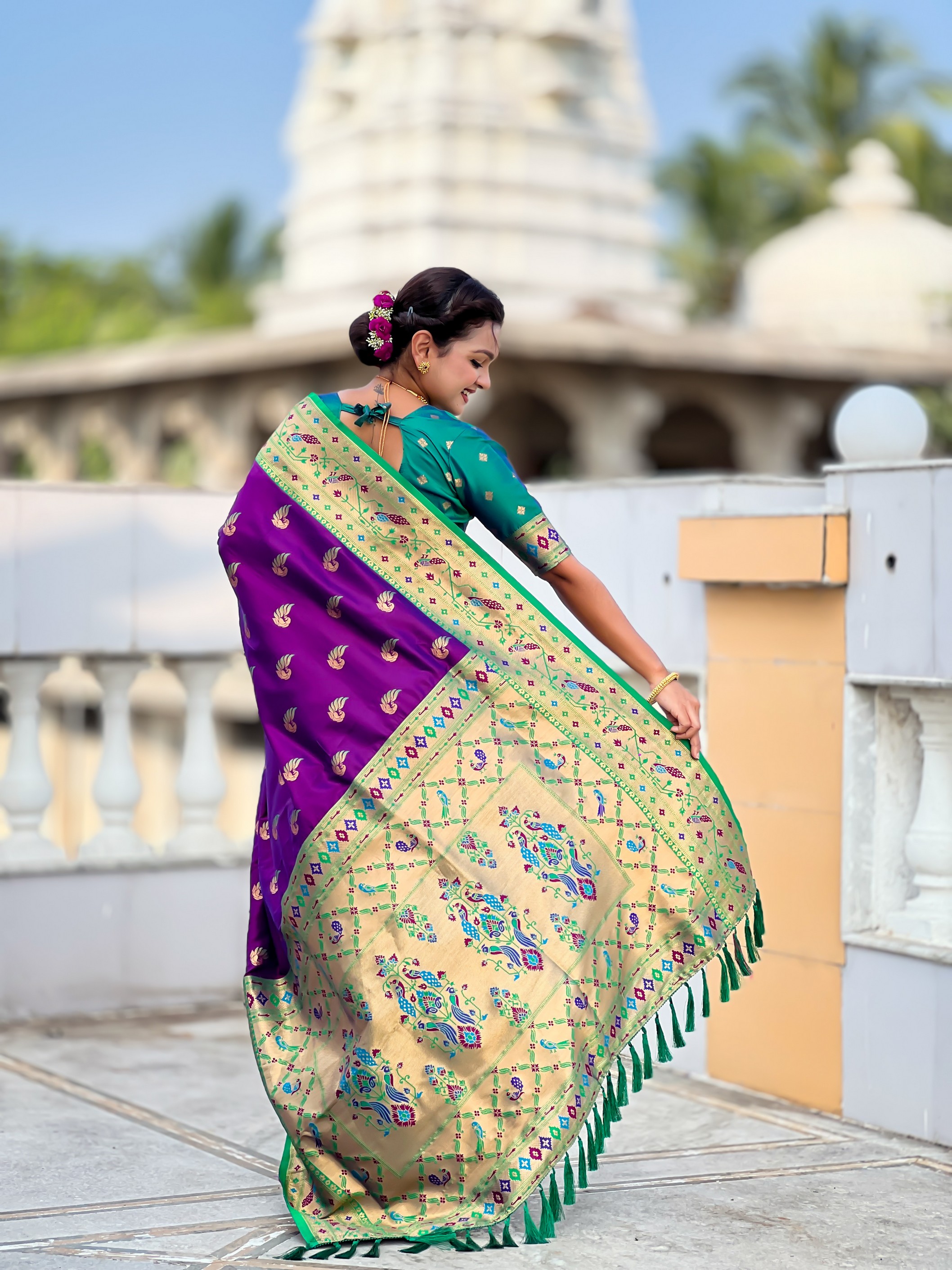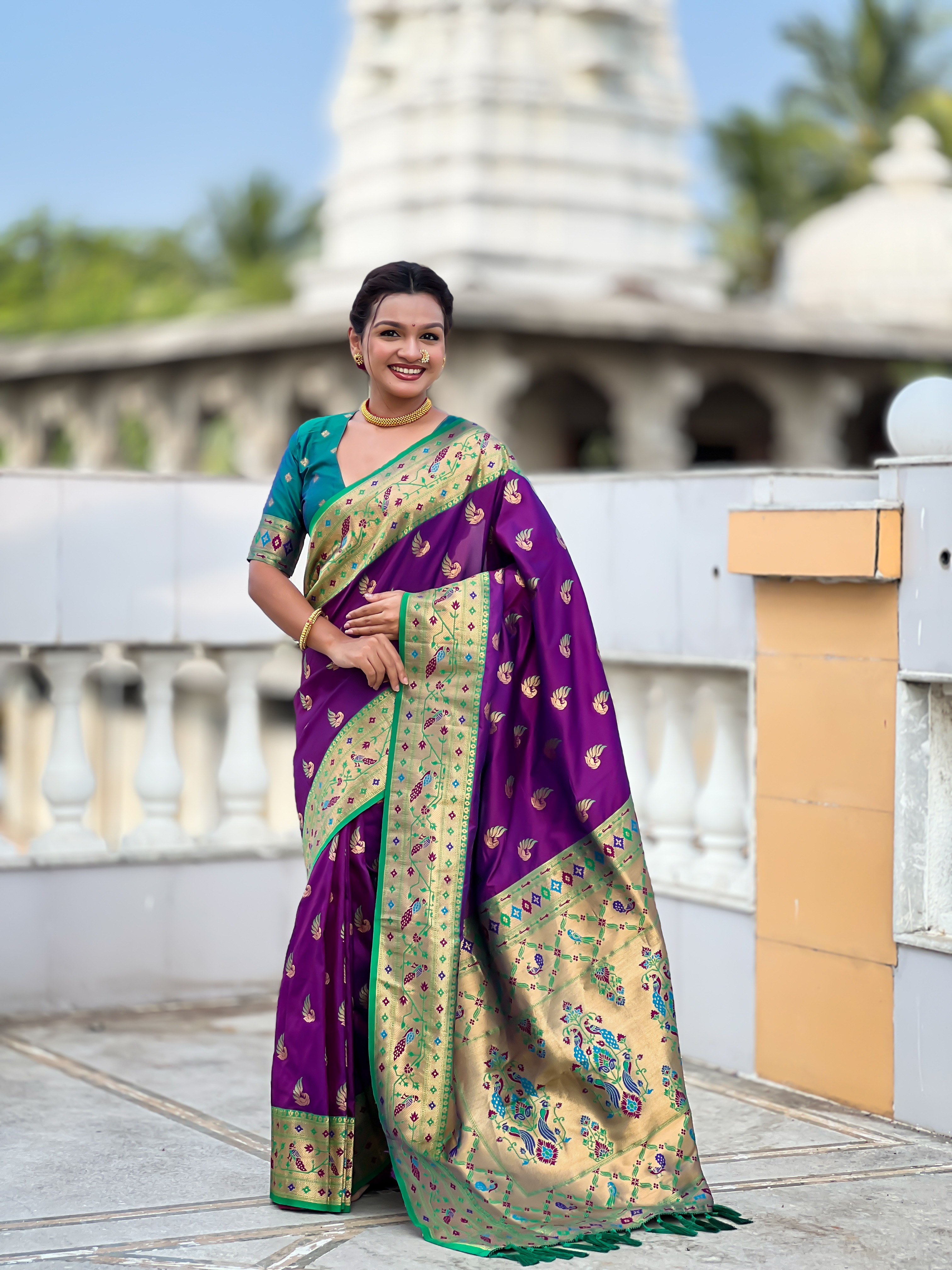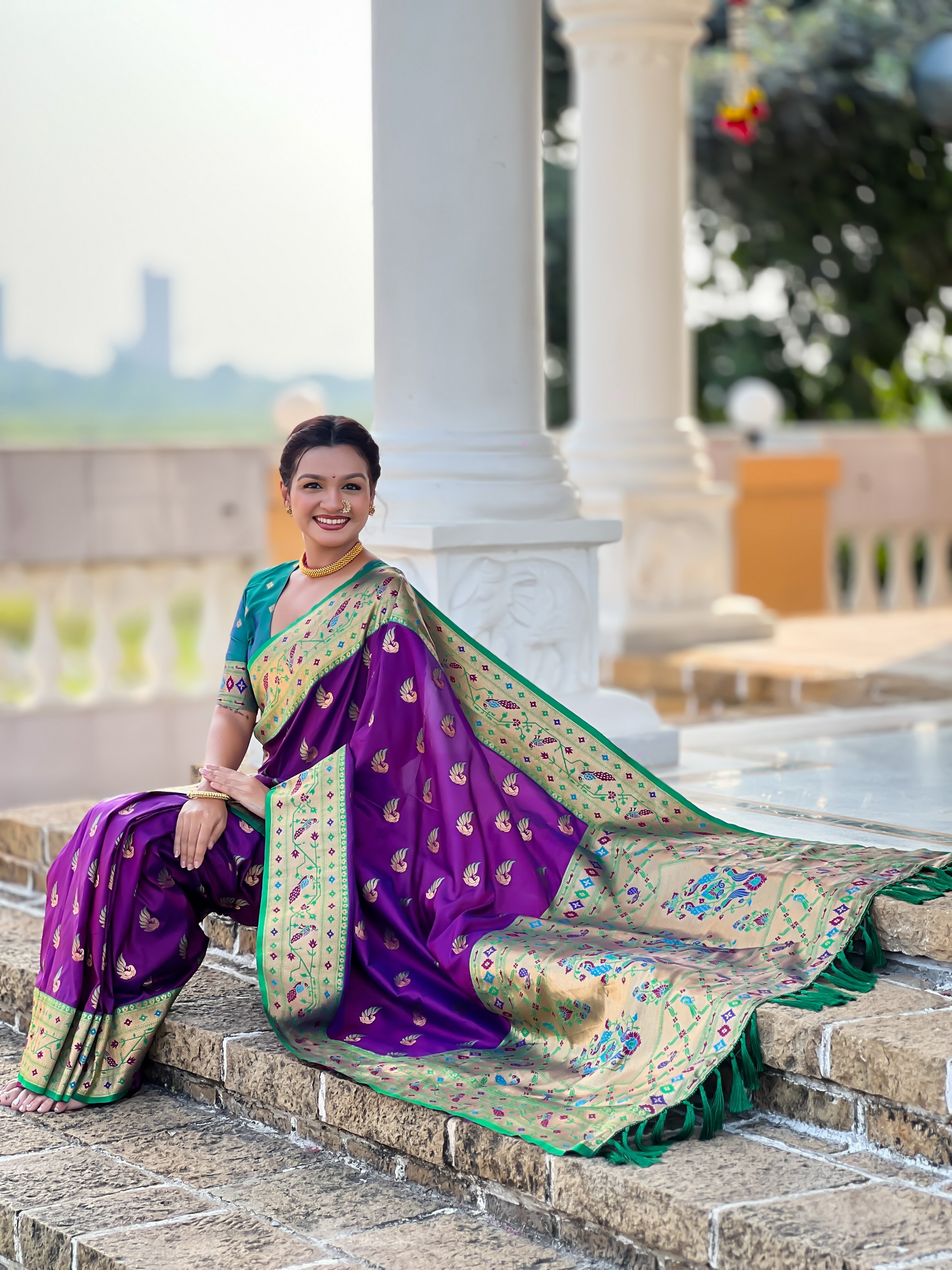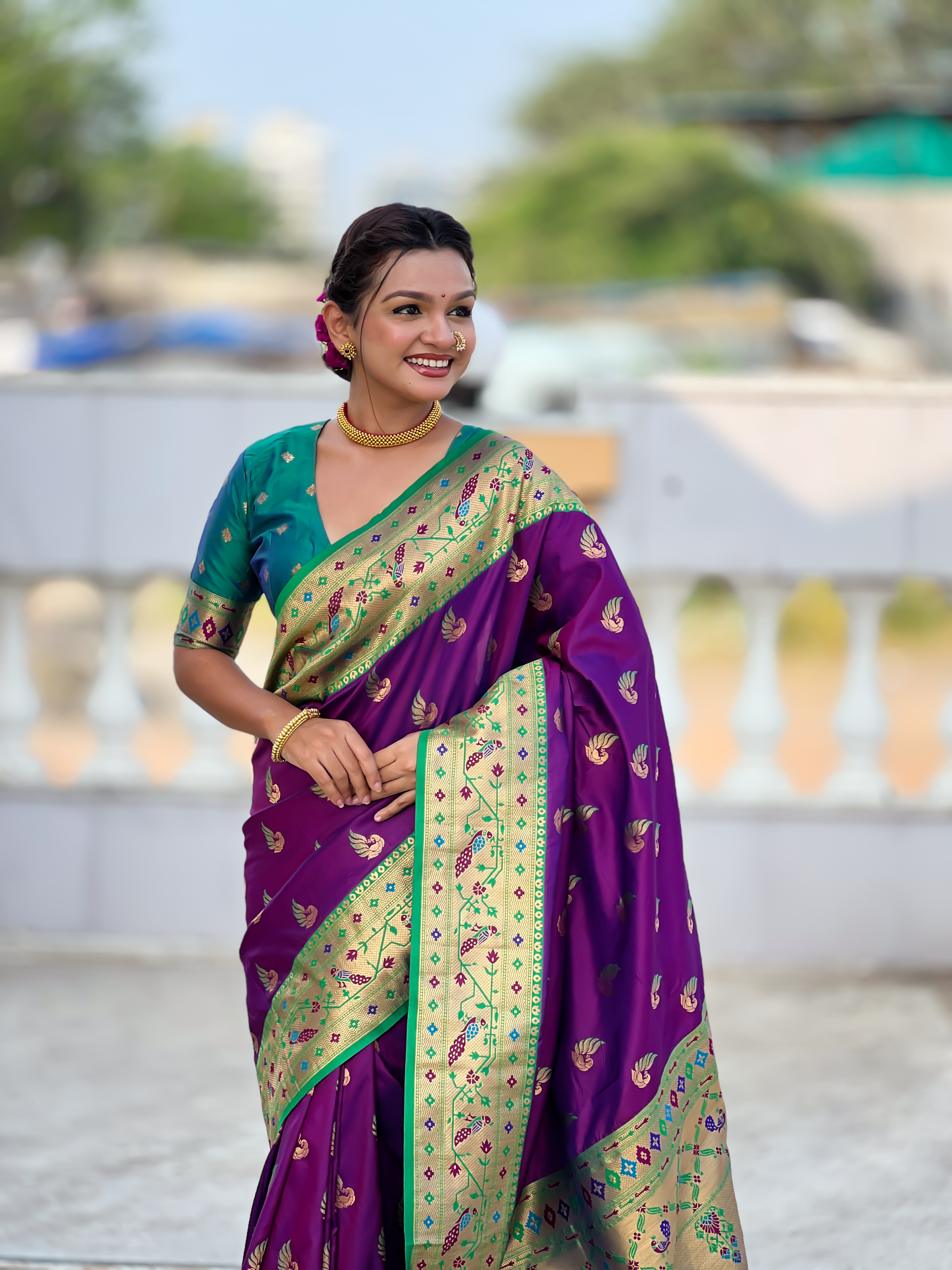 Magenta Color Paithani Silk Woven Meenakari Jacquard Designer Saree