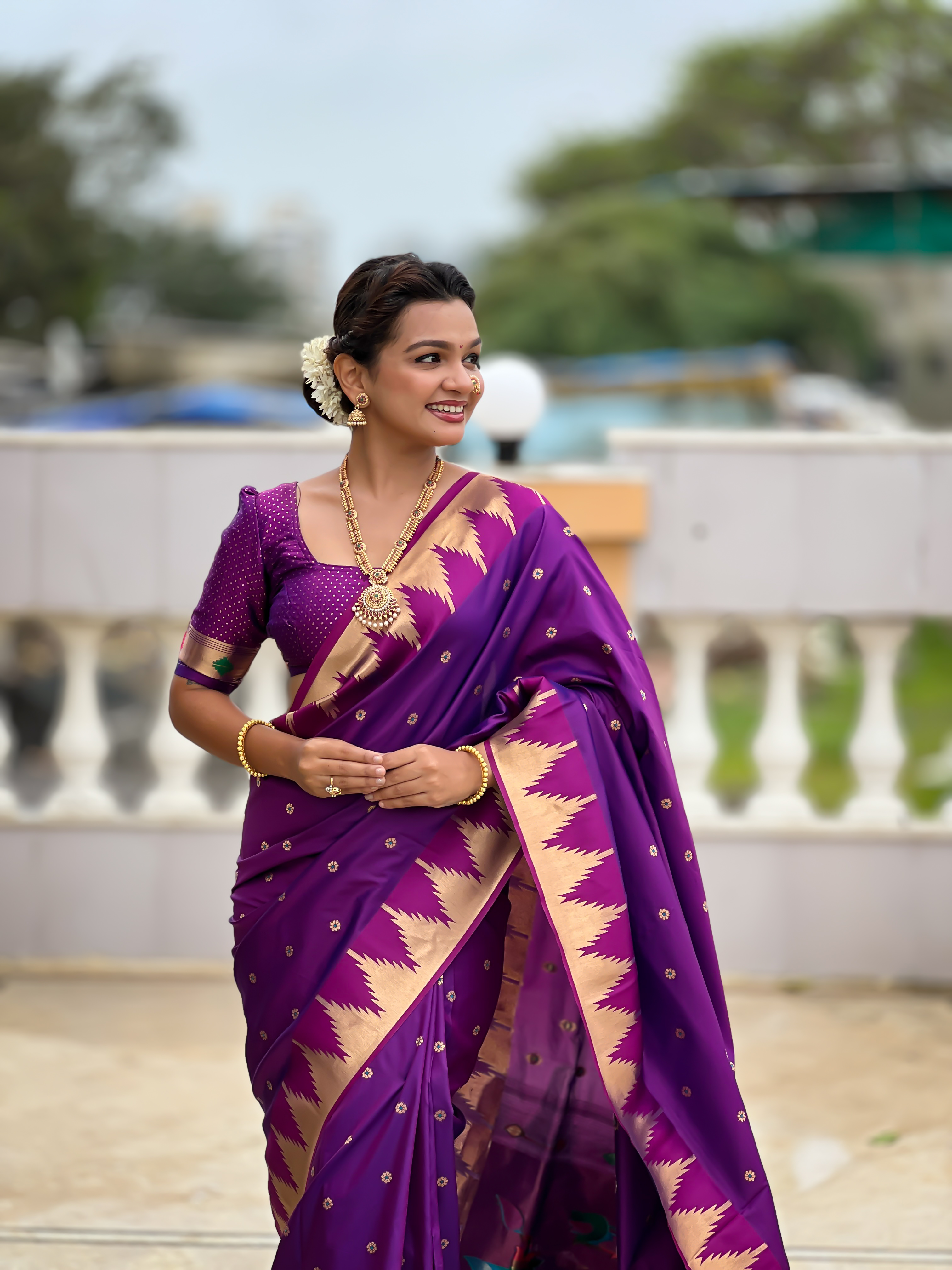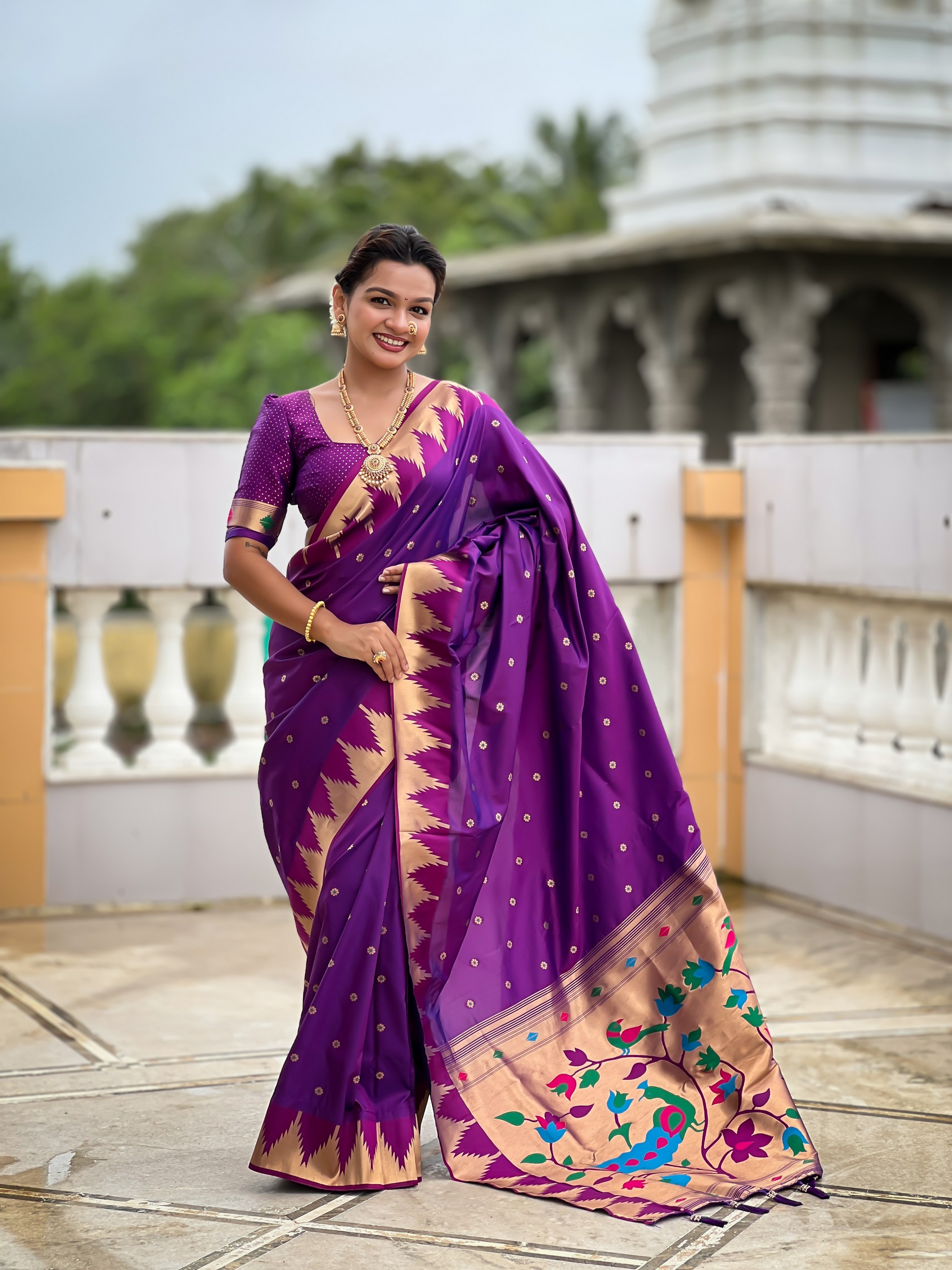 Magenta Color Sophisticated Paithani Silk Fabric Woven Jacquard Meenakari Designer Saree