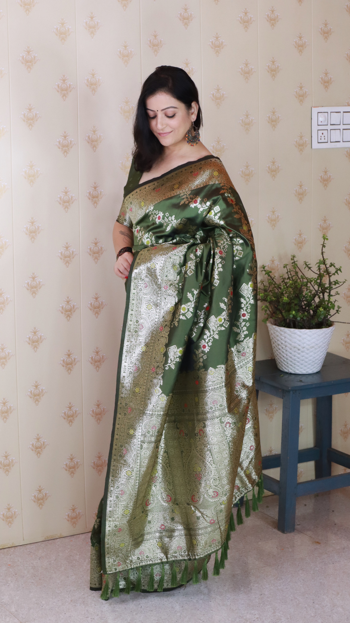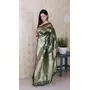 Mahendi Color Woven Silver Jari Designer Banarasi Silk Ceremonial Saree