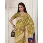 Mahendi Green Color Linen Cotton Fabric Ceremonial Looks Partywear Saree