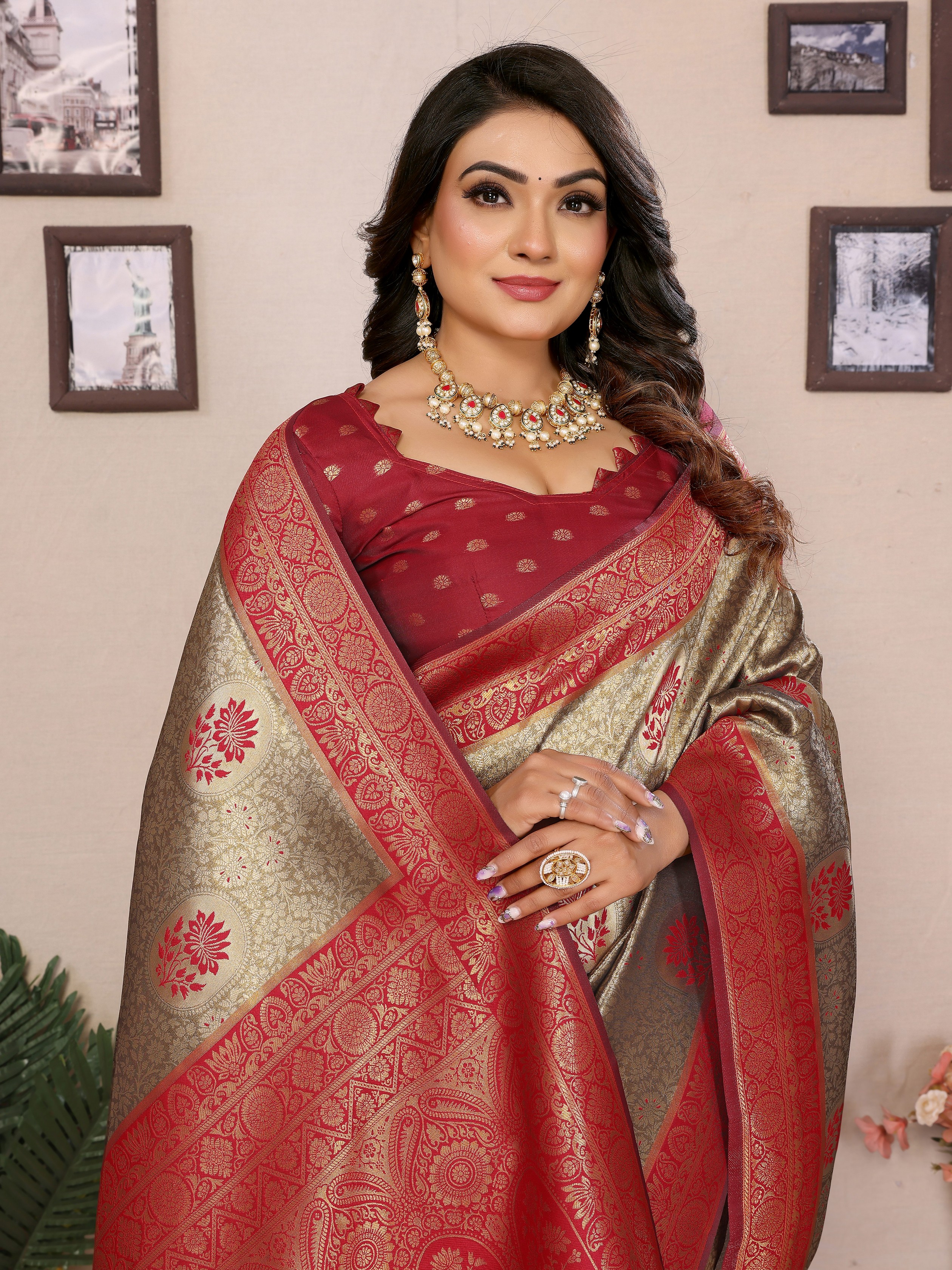 Maroon Color Banarasi Tissue Silk Woven Jari Designer Ethnic Partywear Saree