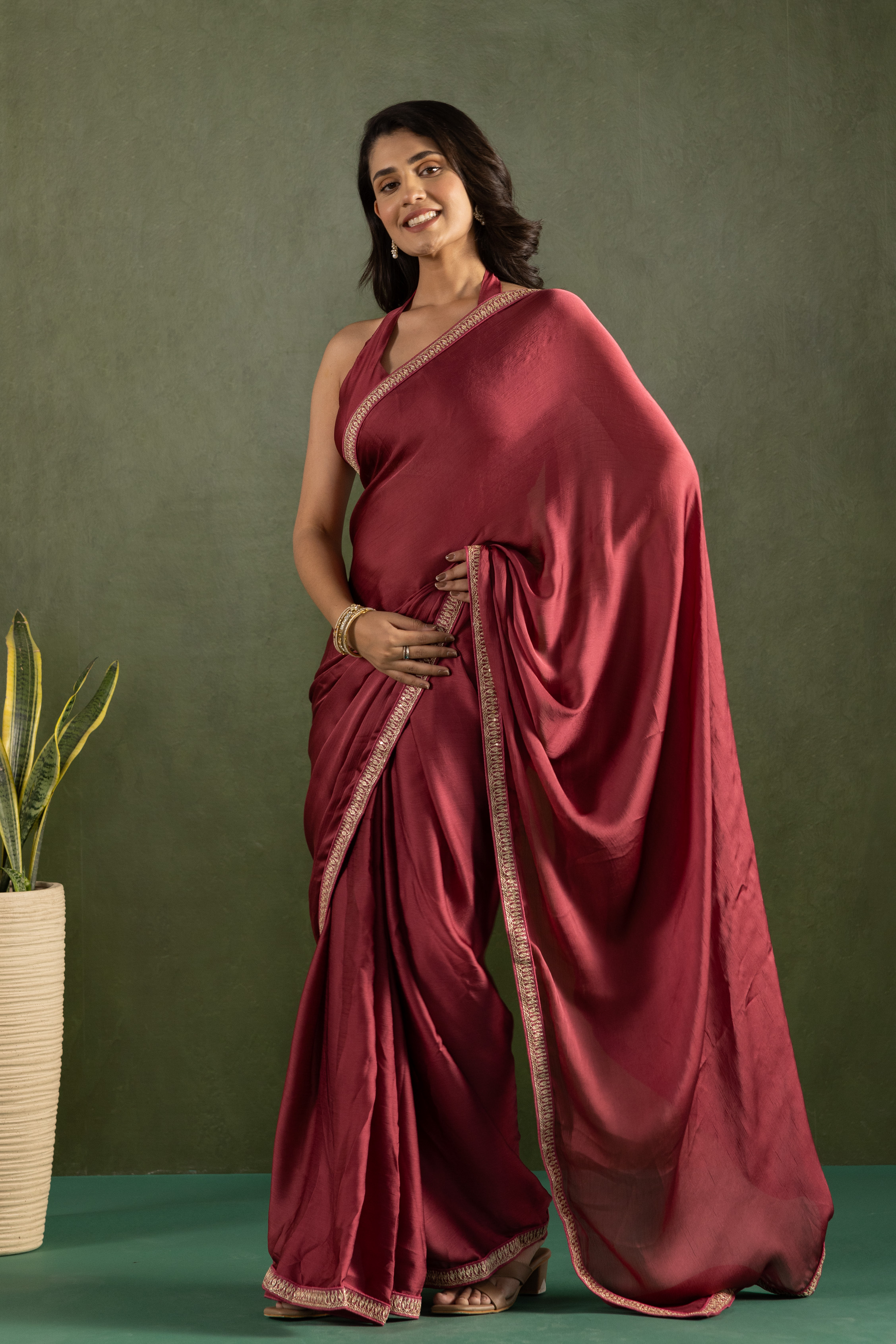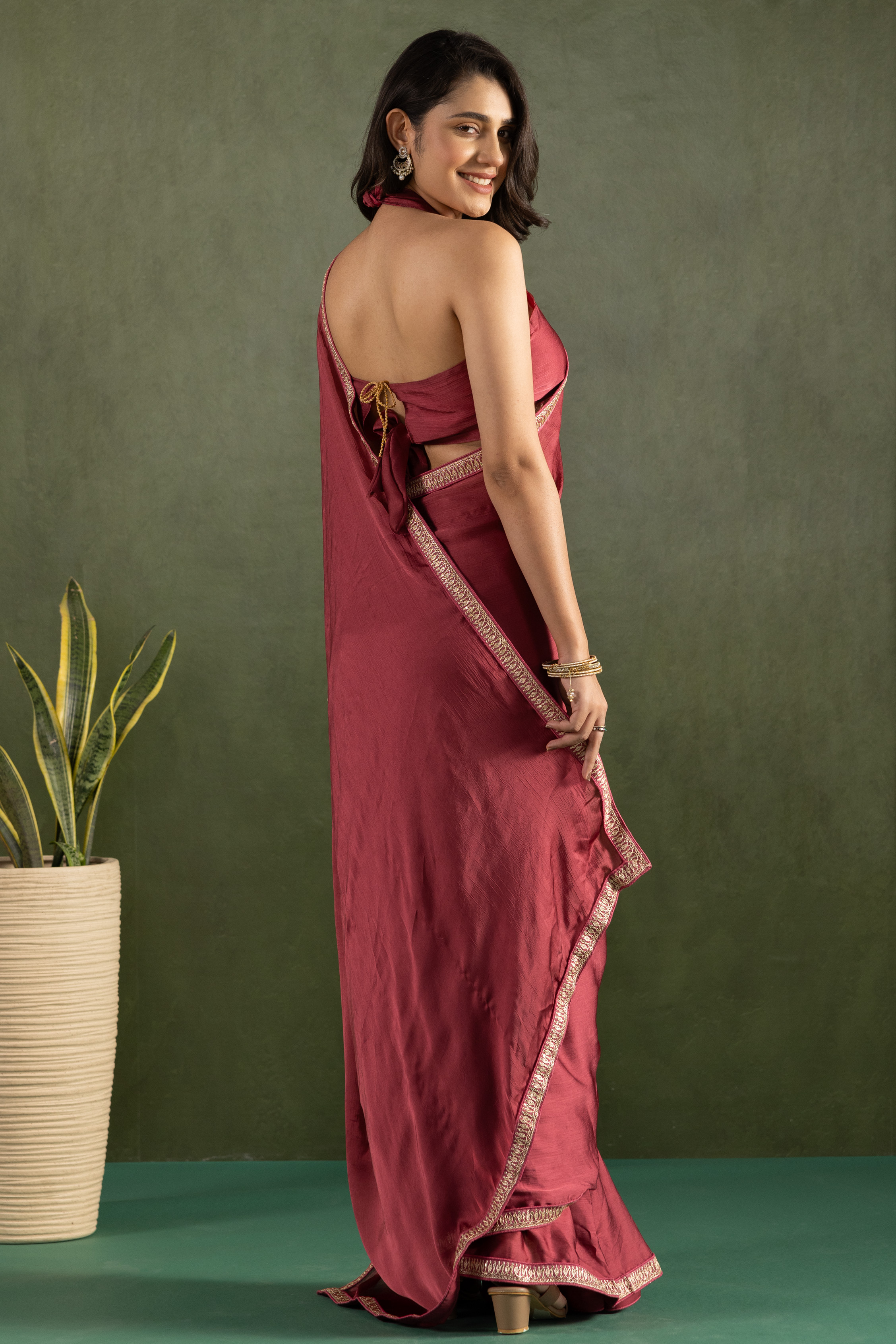 Maroon Color Chiffon Fabric Ready To Wear Saree For Graceful Bollywood Style Saree