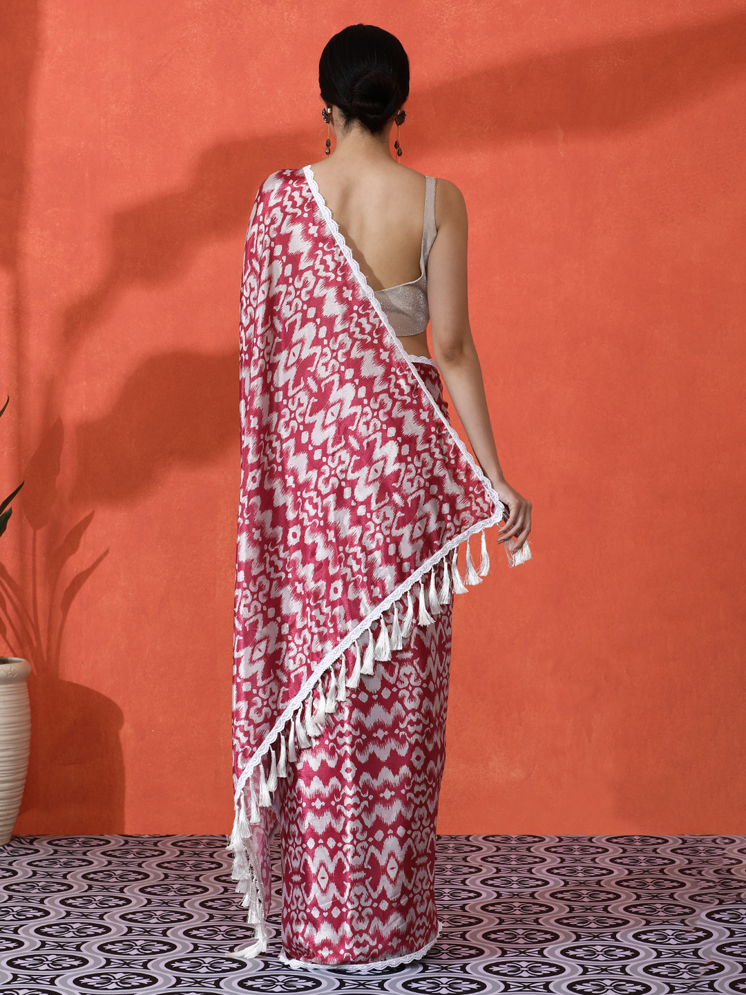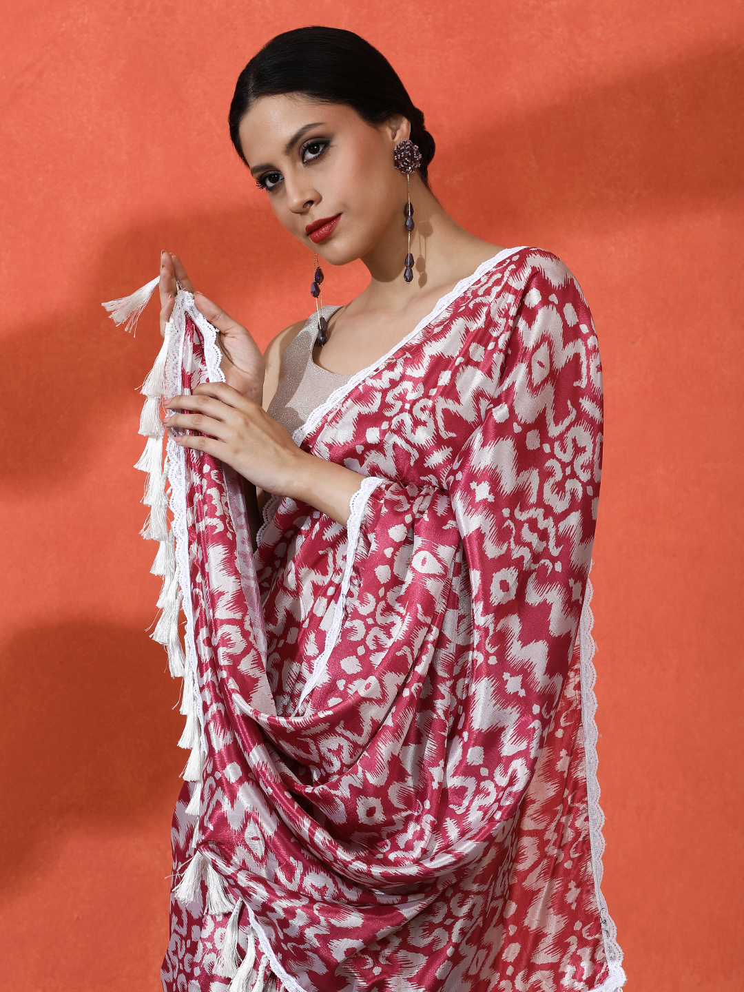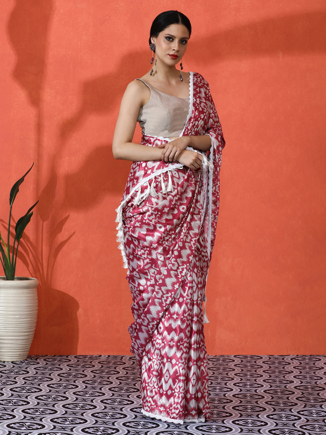 Maroon Color Chinon Fabric Designer Digital Printed Saree For Ceremonial Looks