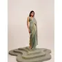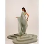 Metallic Grey Color Embellished Beads and Stones Satin Saree For Beautiful Partywear Saree