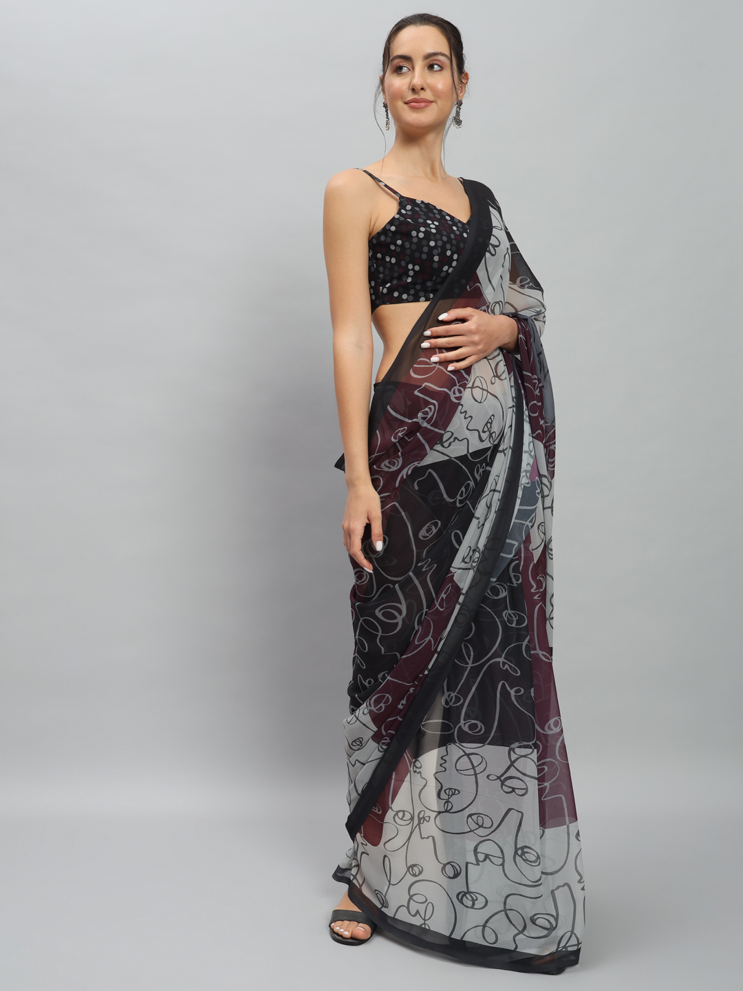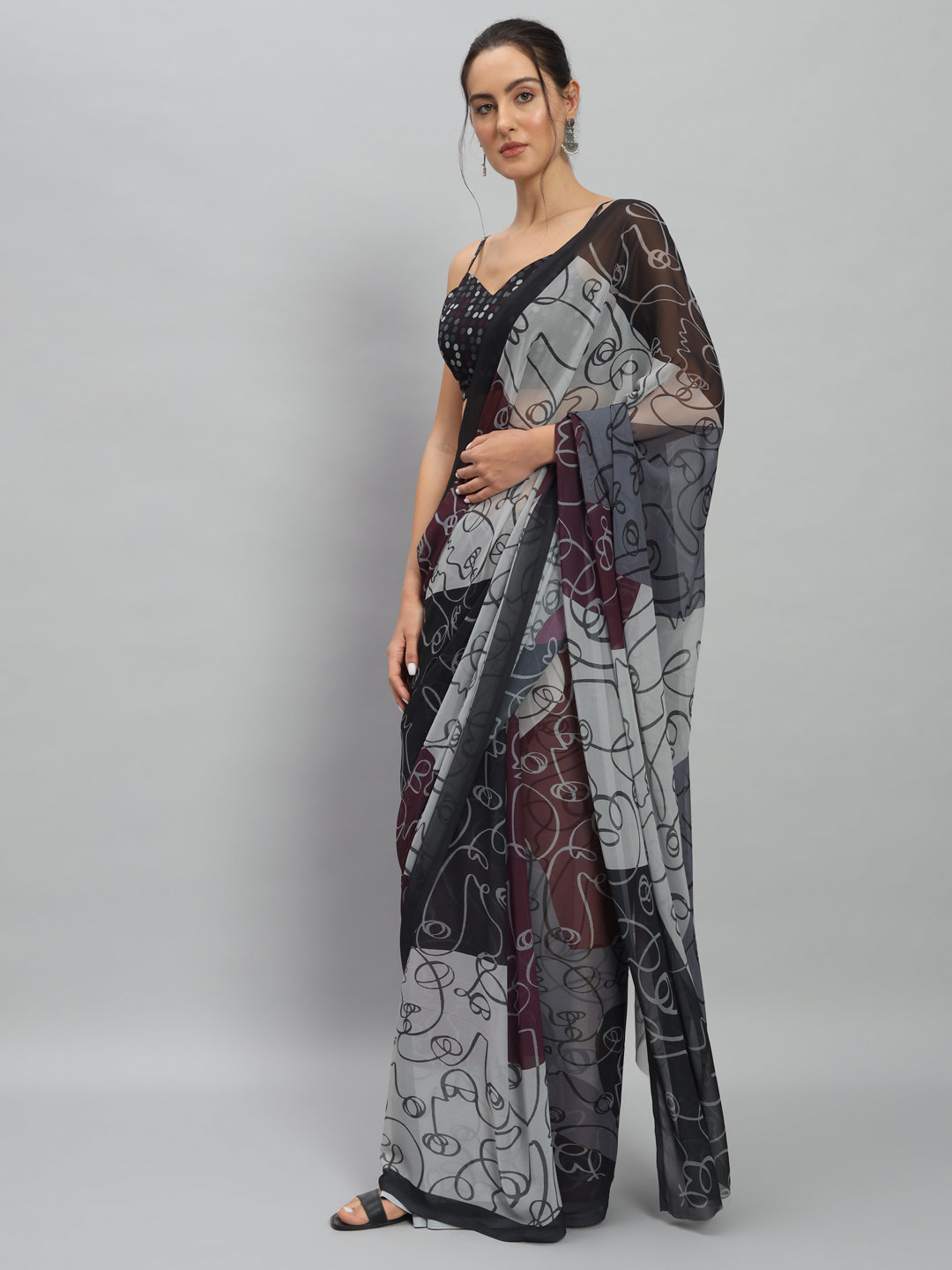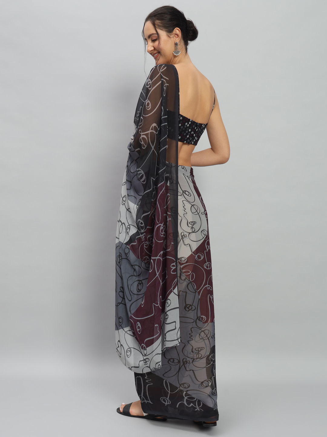 Multi Color Georgette Fabric Designer Printed Graceful Ethnic Saree