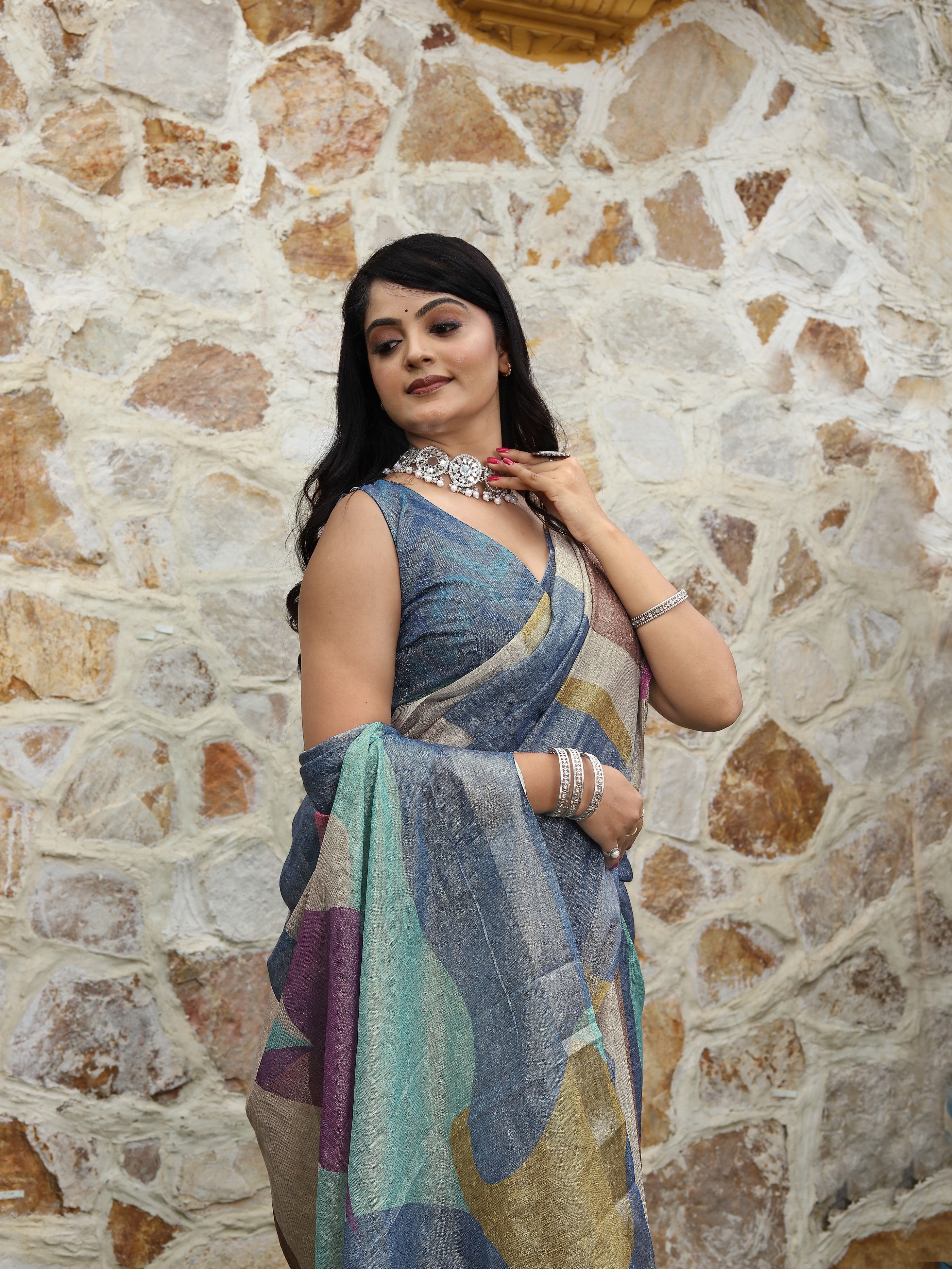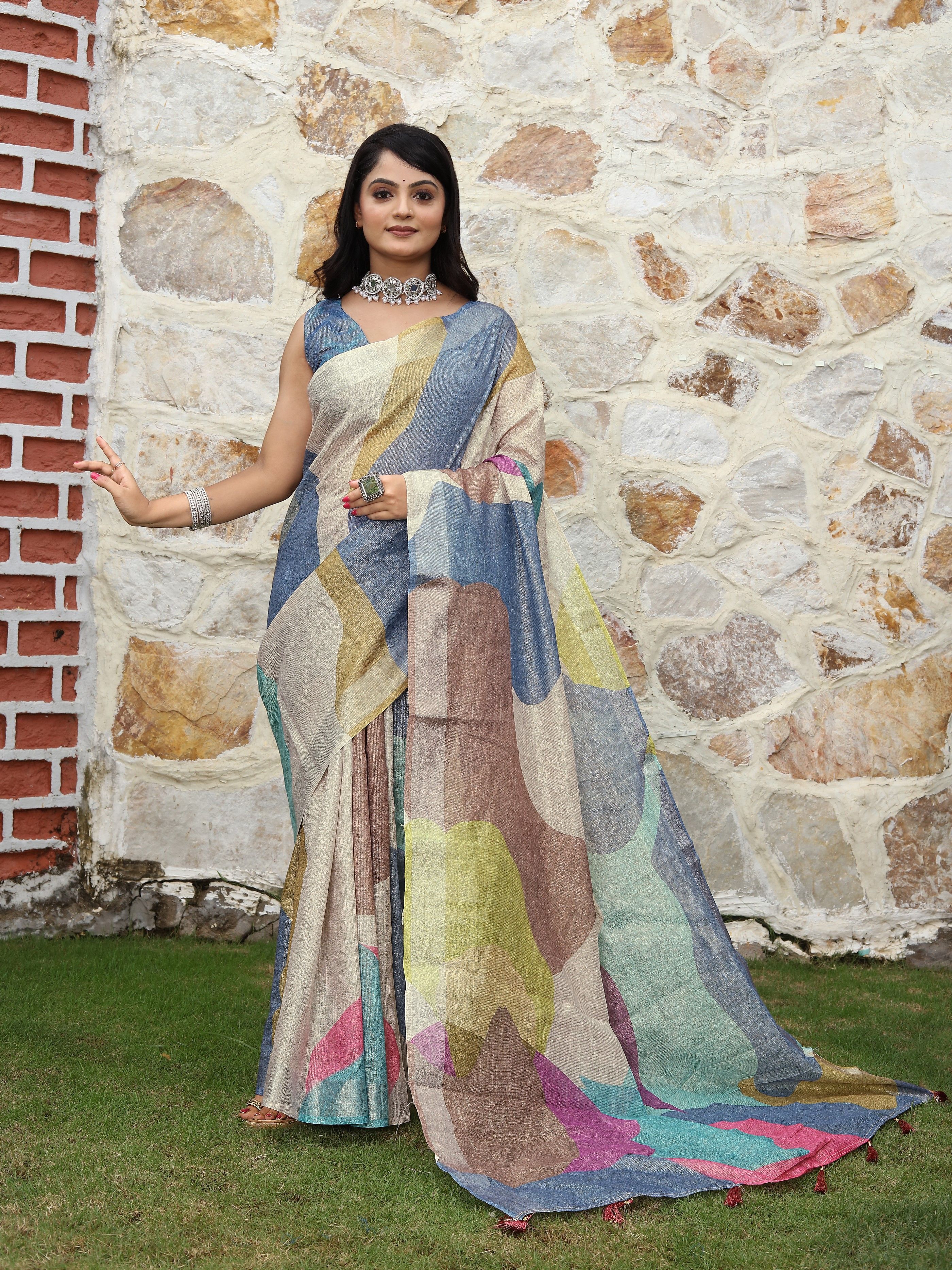 Made using high-quality fabrics such as silk, soft silk, georgette, organza, chiffon, crepe, linen, cotton blends ...etc .