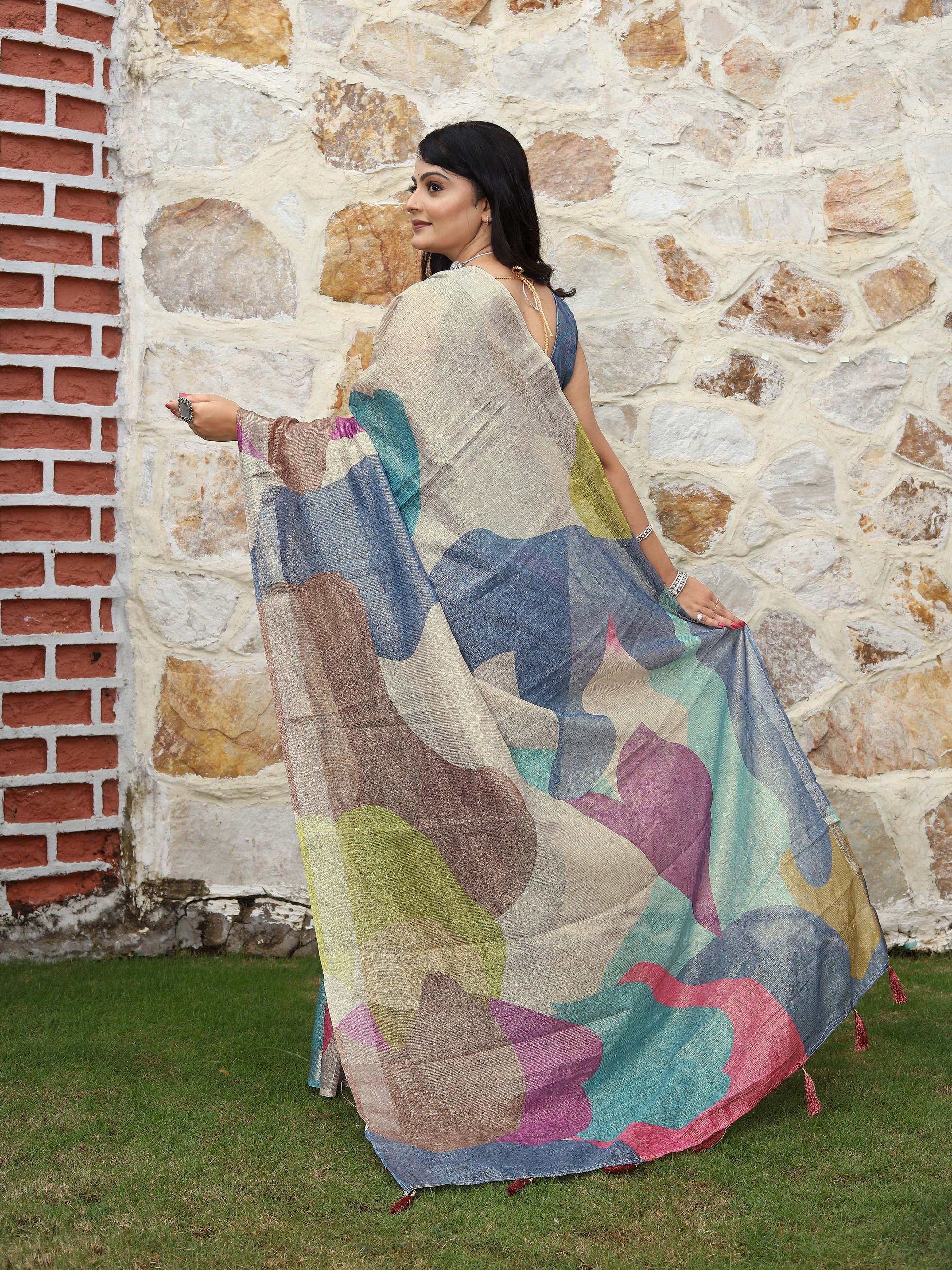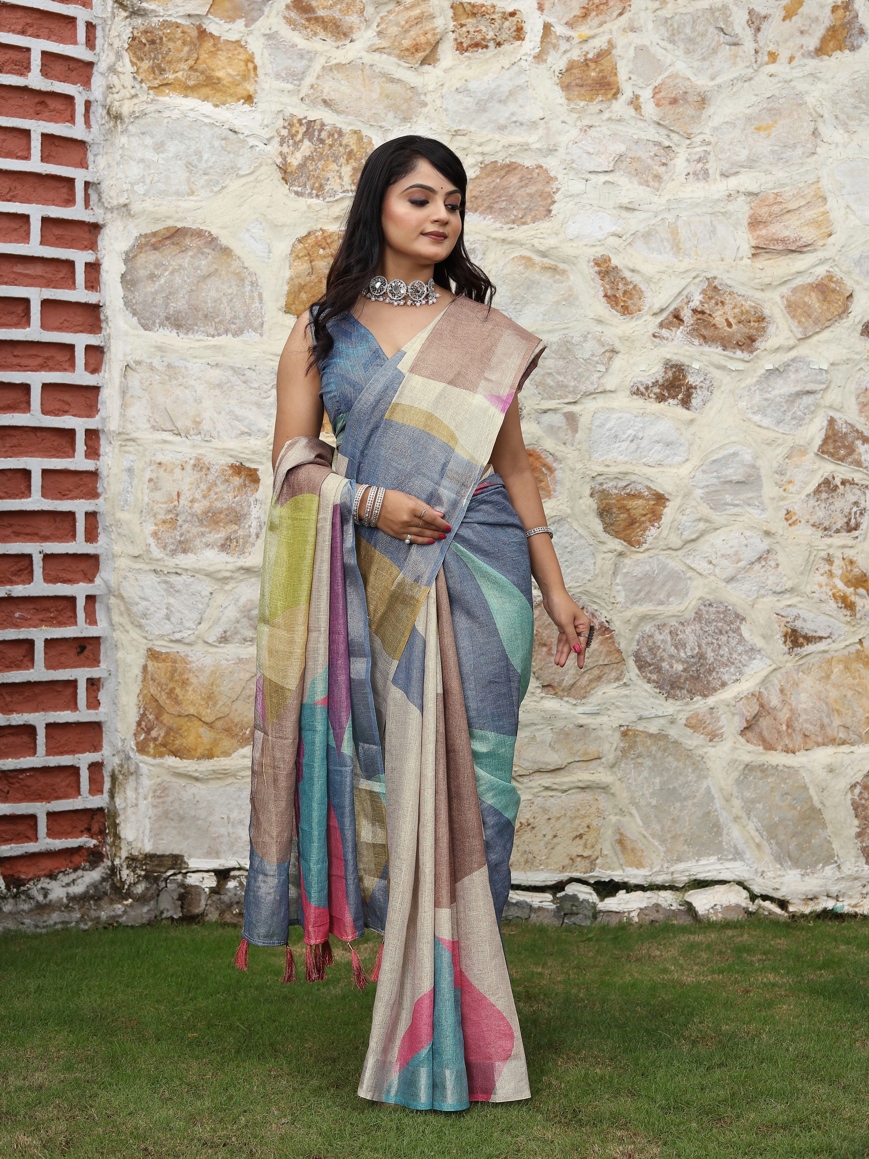 Multy Color Cotton Shimmer Fabric Designer Printed Ethnic Girlie Saree