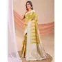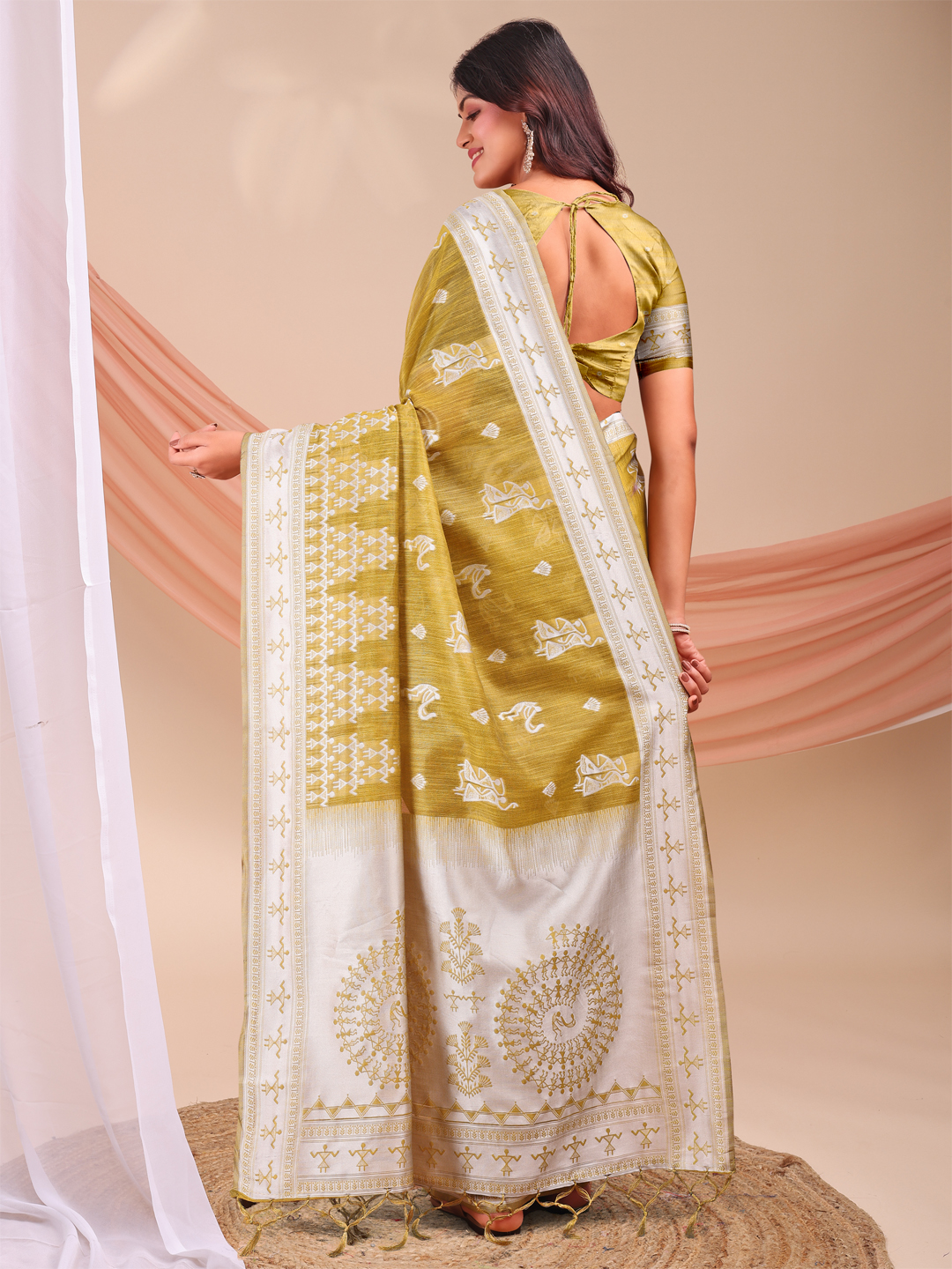 Mustard Color Linen Cotton Fabric Wevon Jacquard Designer Beautiful Partywear Saree