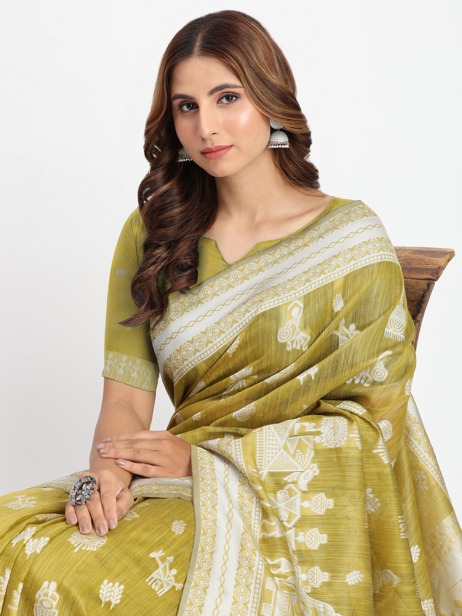 Mustard Color Linen Cotton Woven Designer Graceful Ethnic Saree
