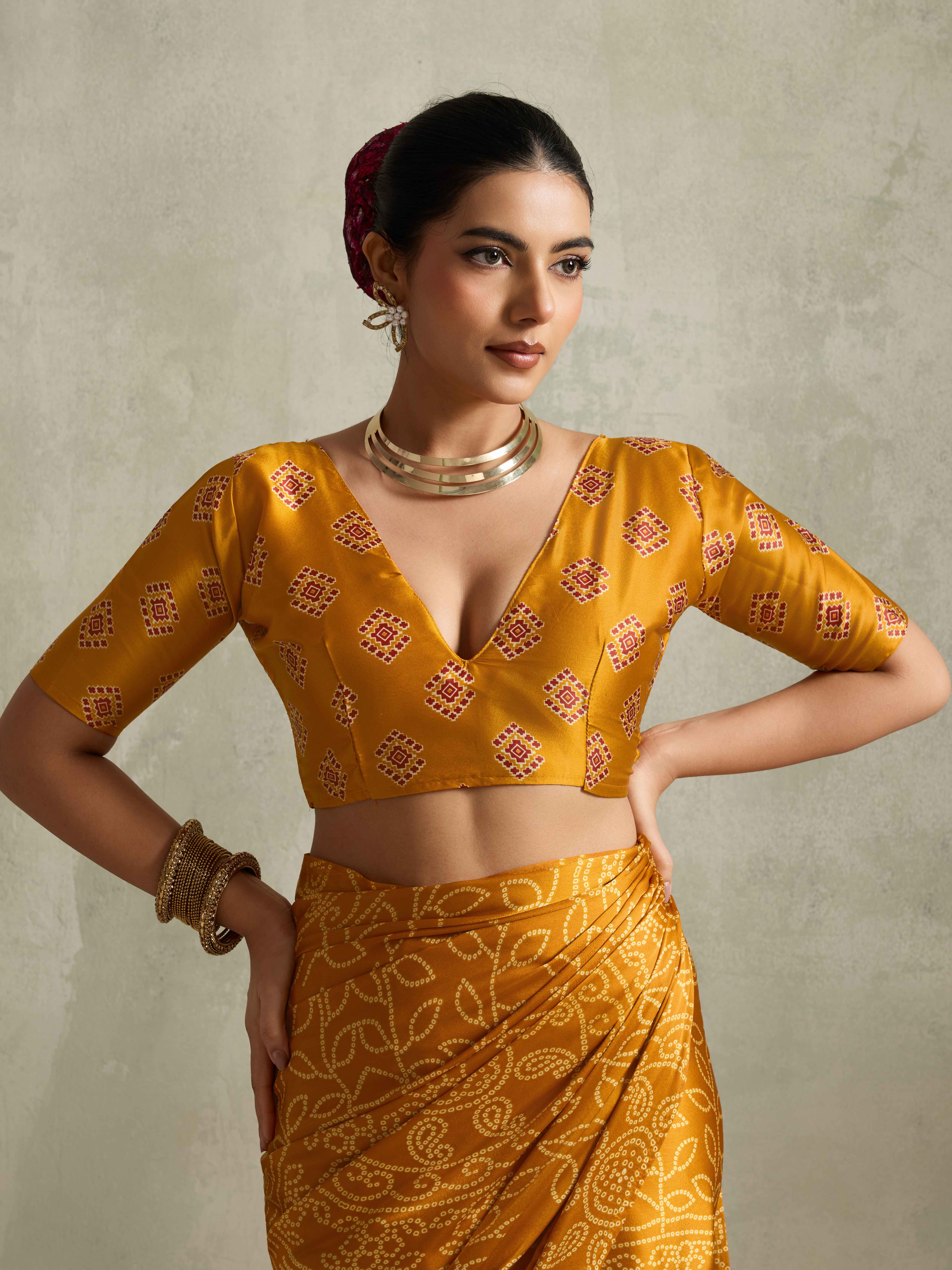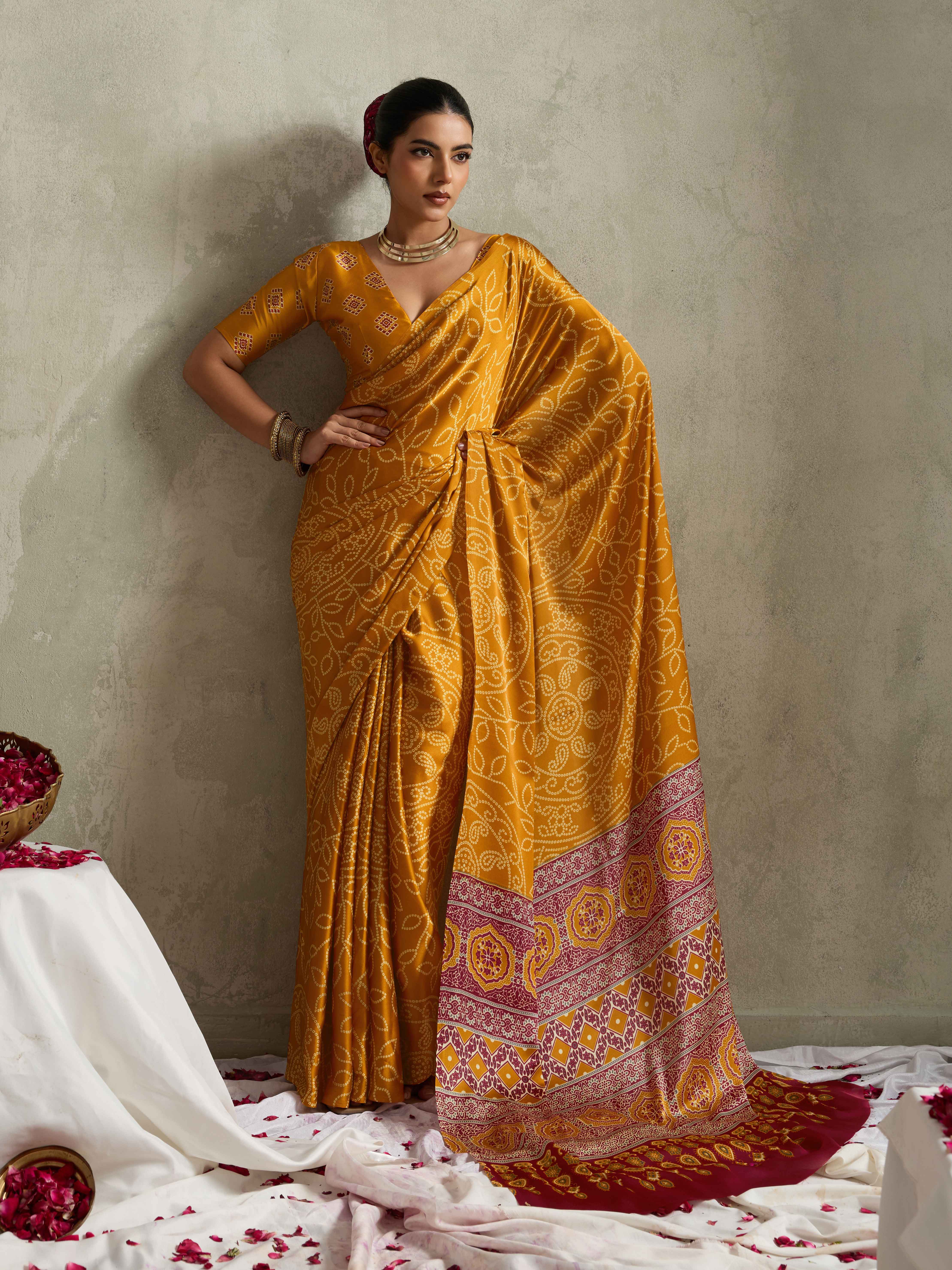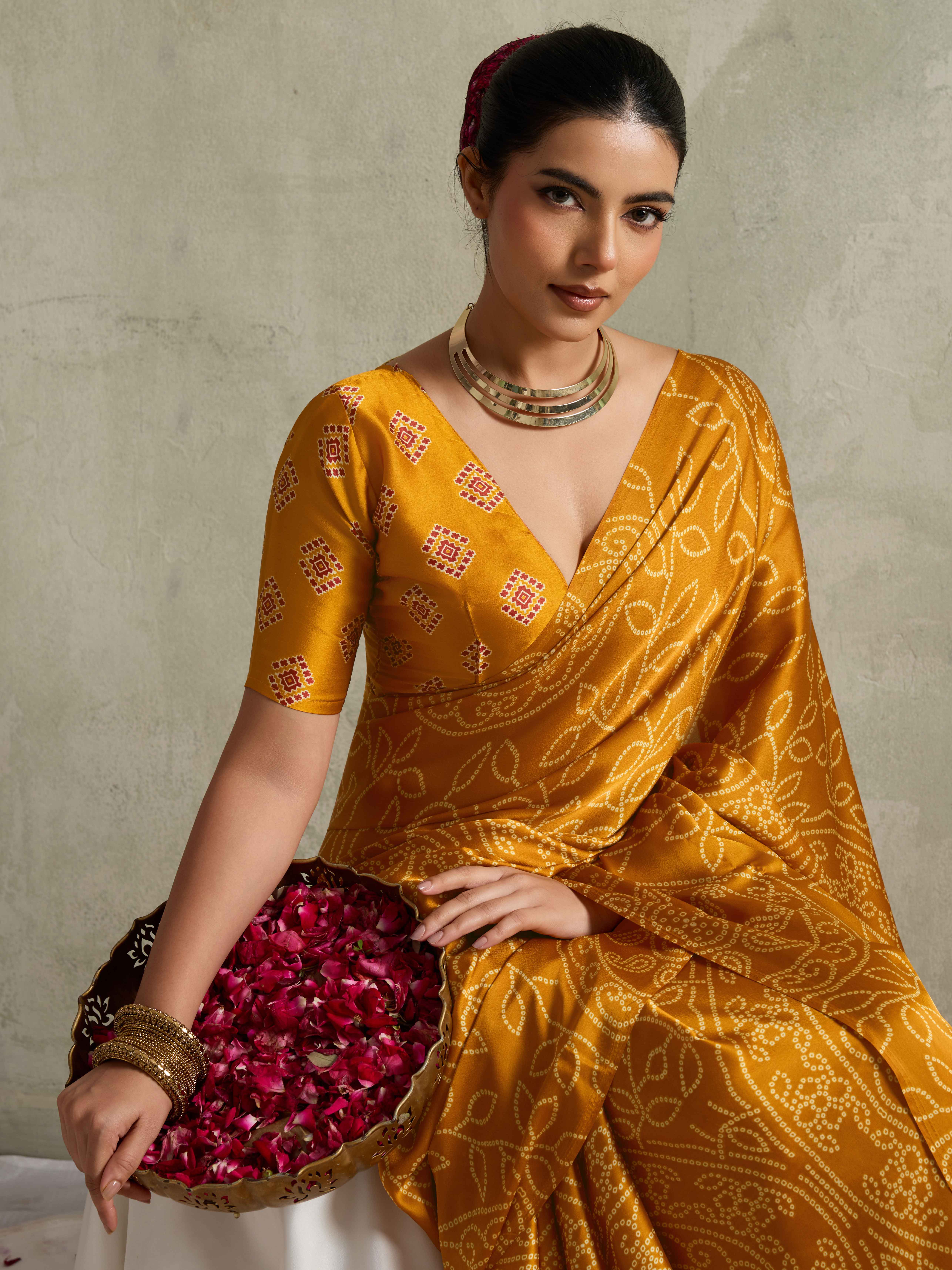 Mustard Color Rich Looks Designer Bandhani Printed Elegant Festive Saree