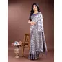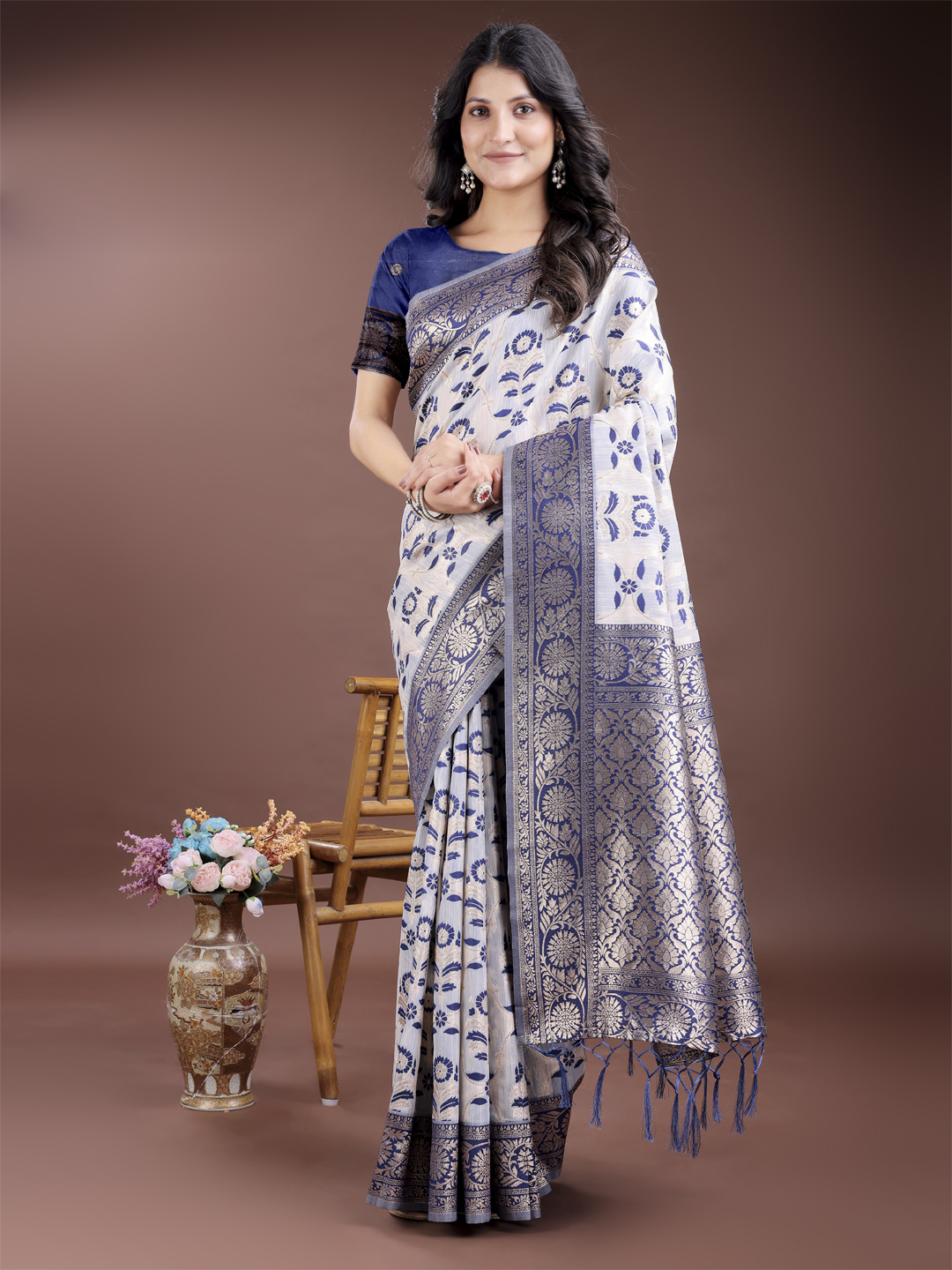 Navy Blue Color Linen Cotton Wevon Jacquard Designer Beautiful Festive Saree
