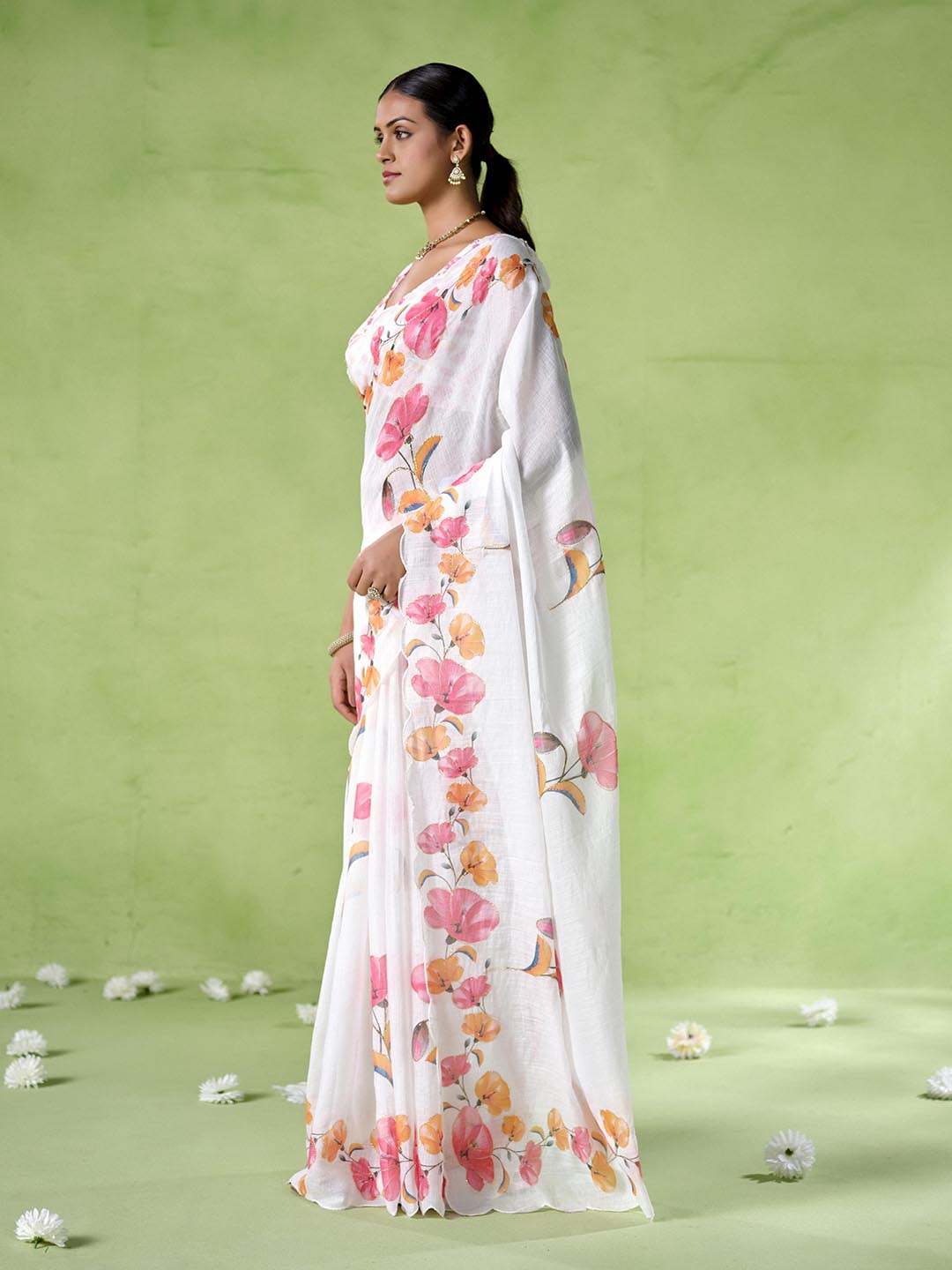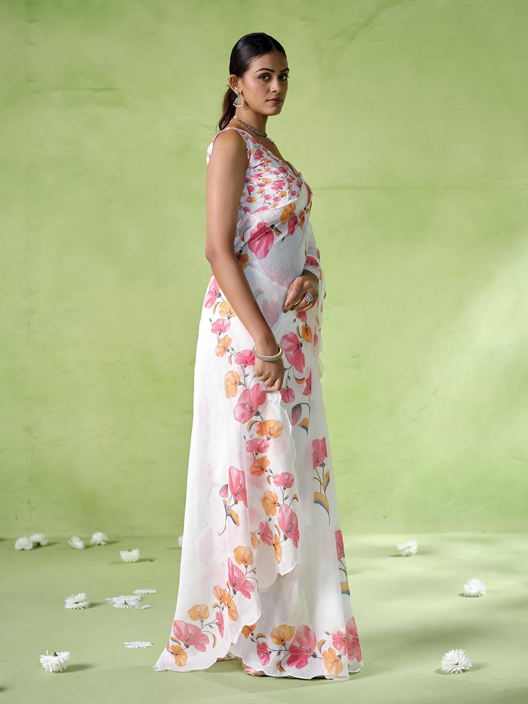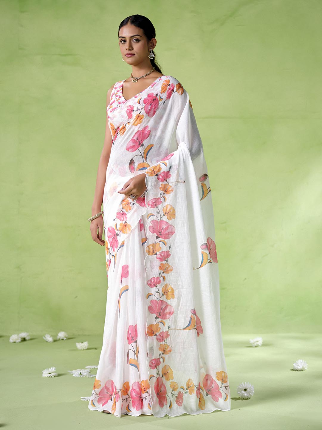 Off White Color Cotton Blend Fabric Beautiful Designer Printed Saree