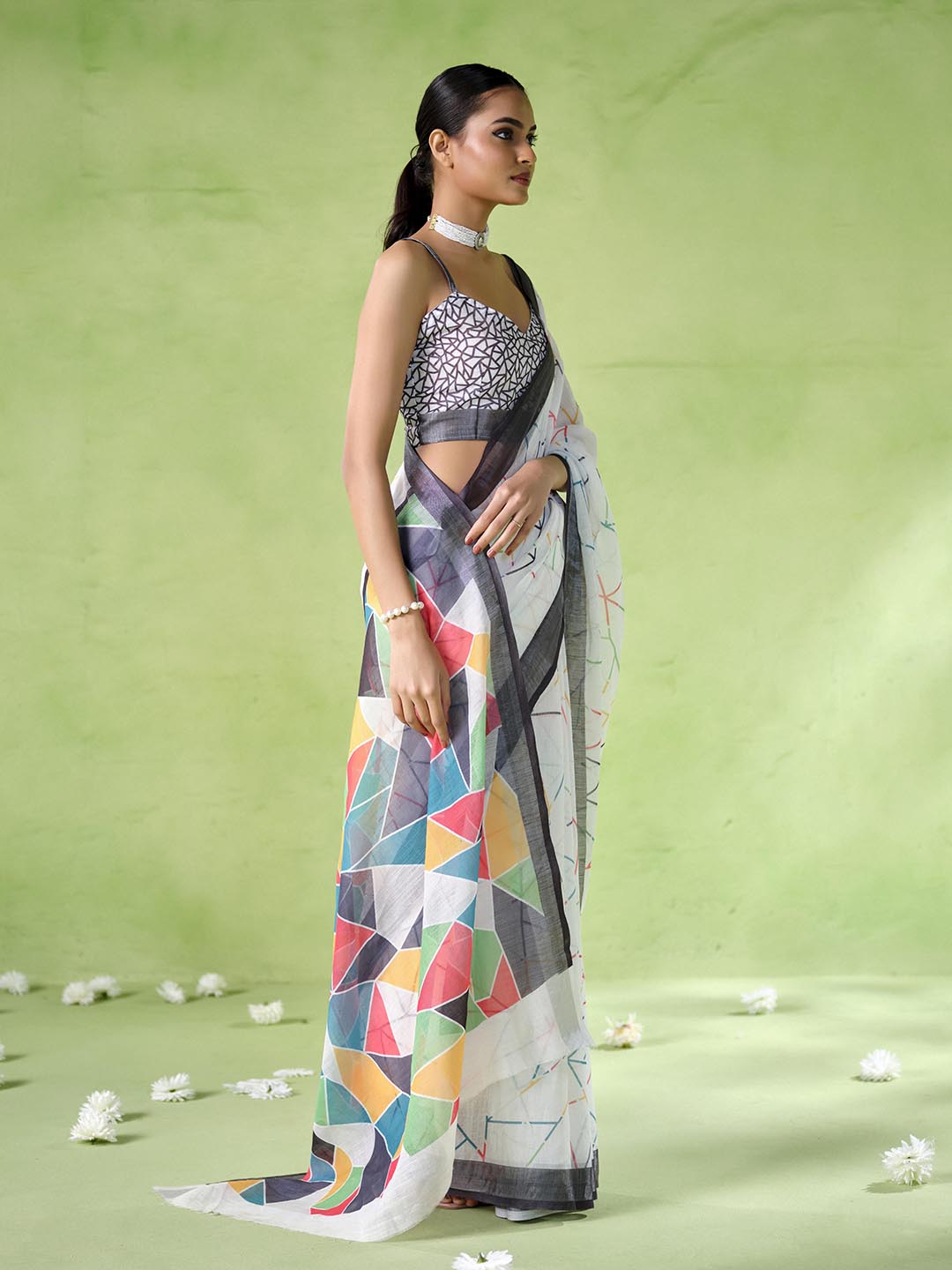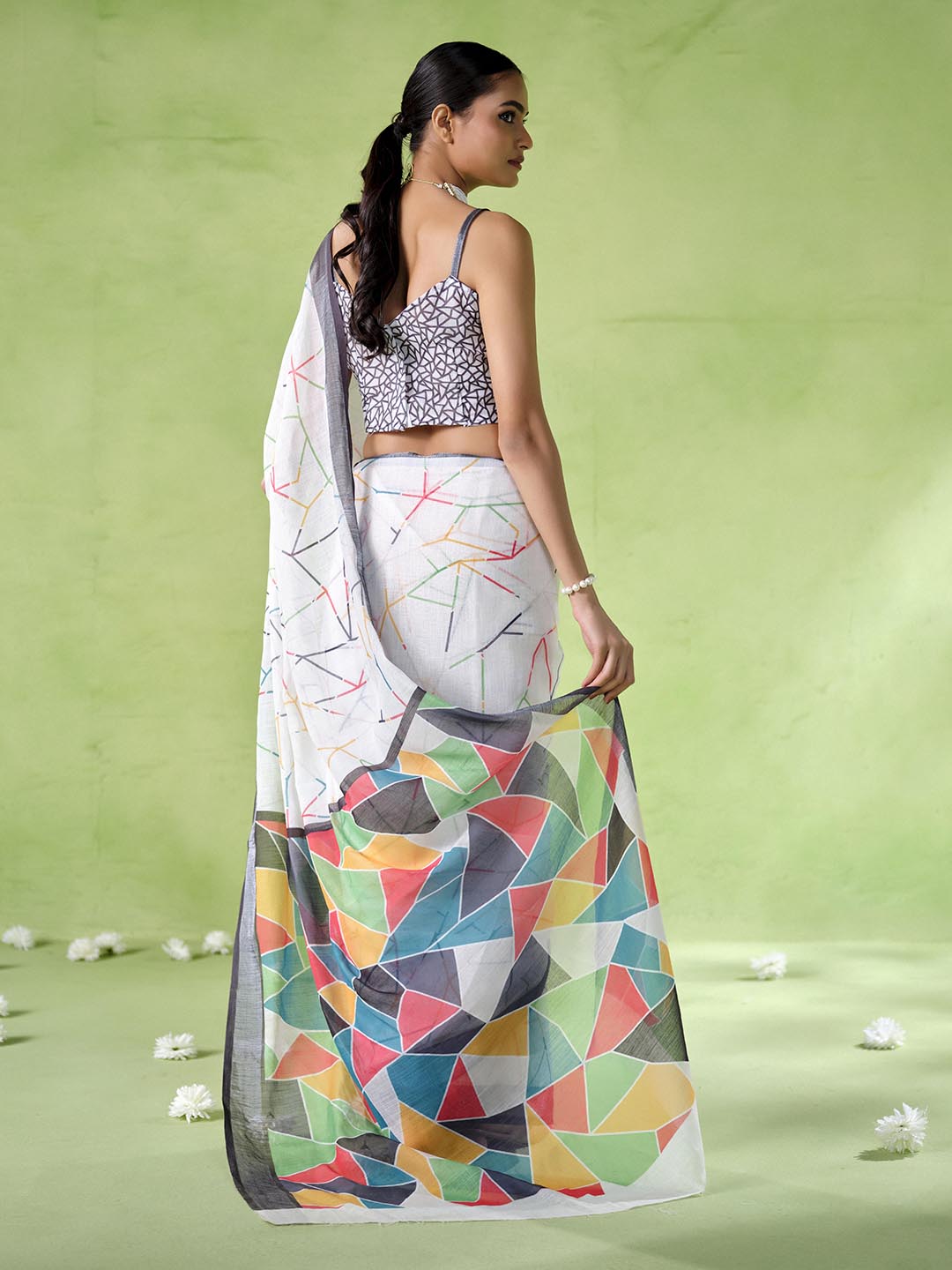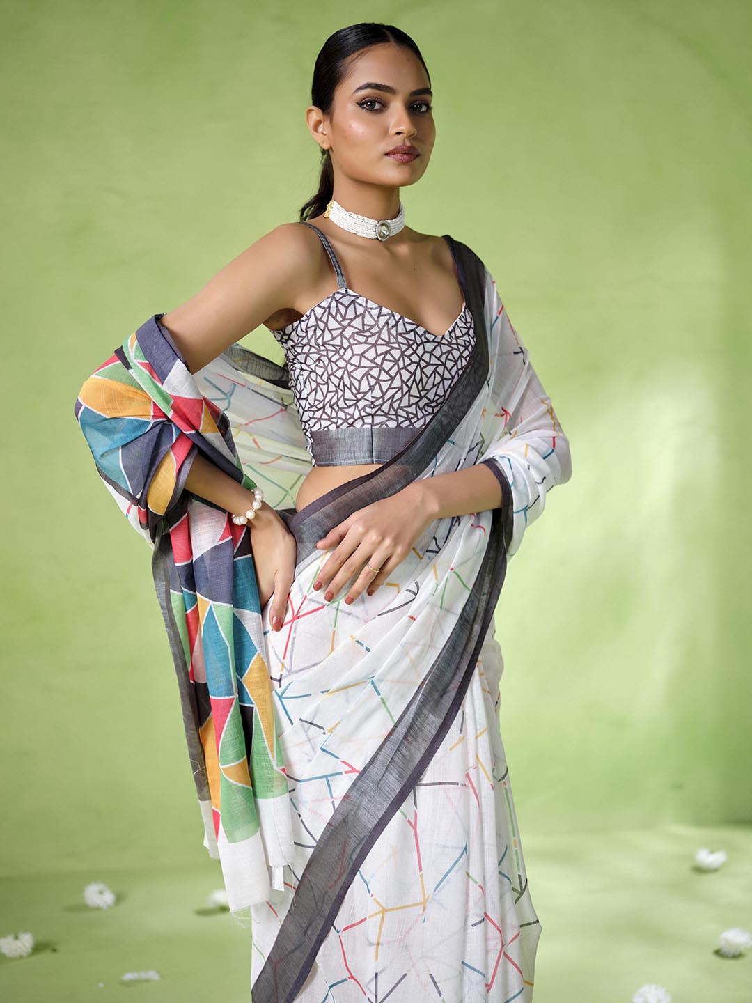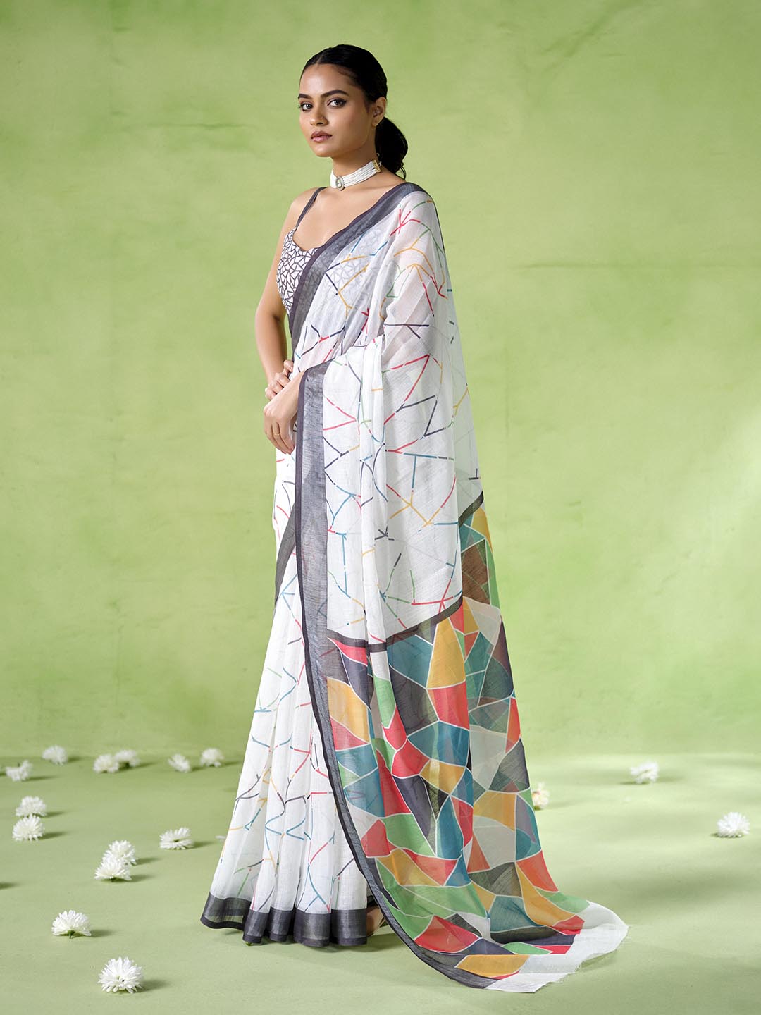 Off White Color Cotton Blend Fabric Beautiful Designer Printed Saree