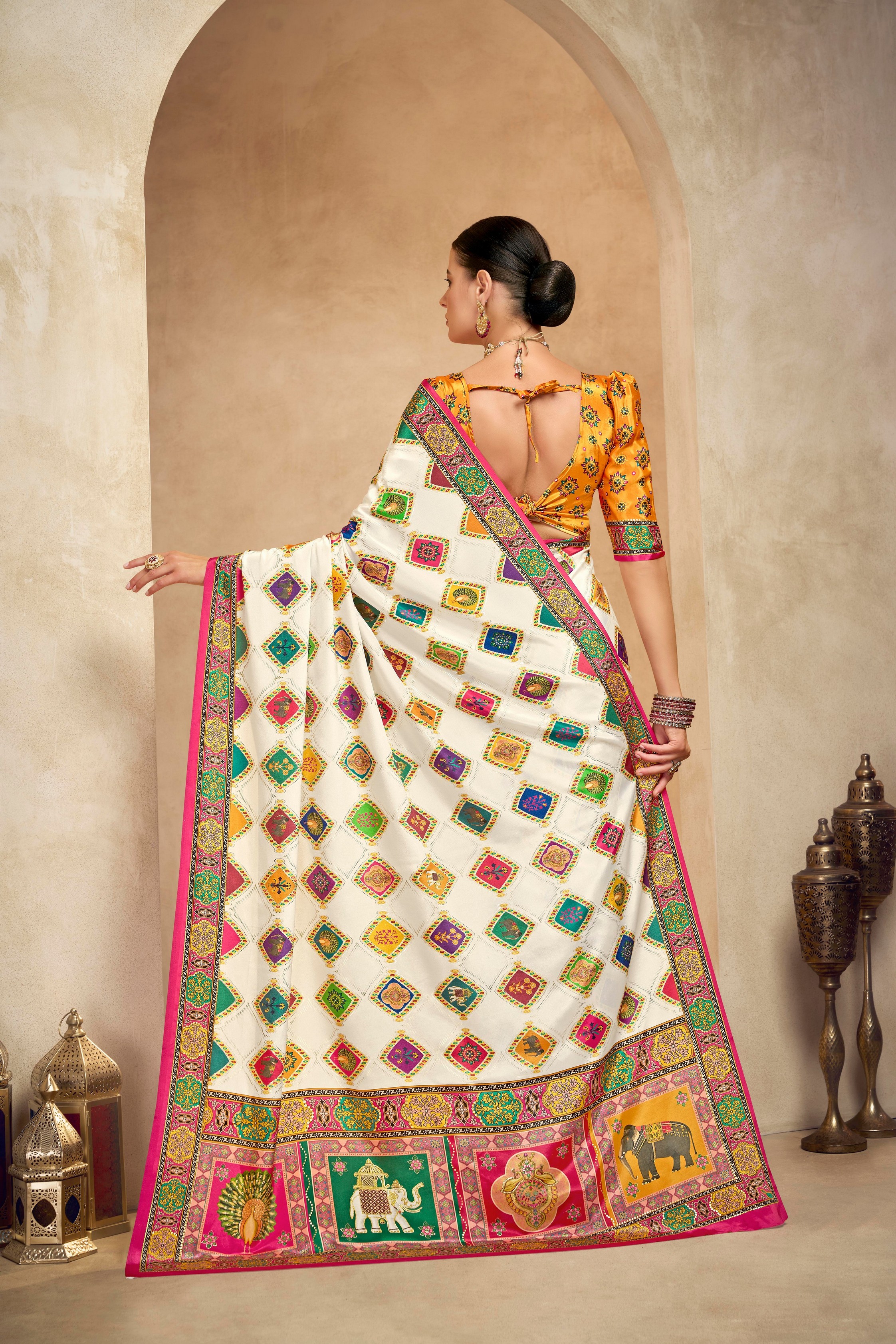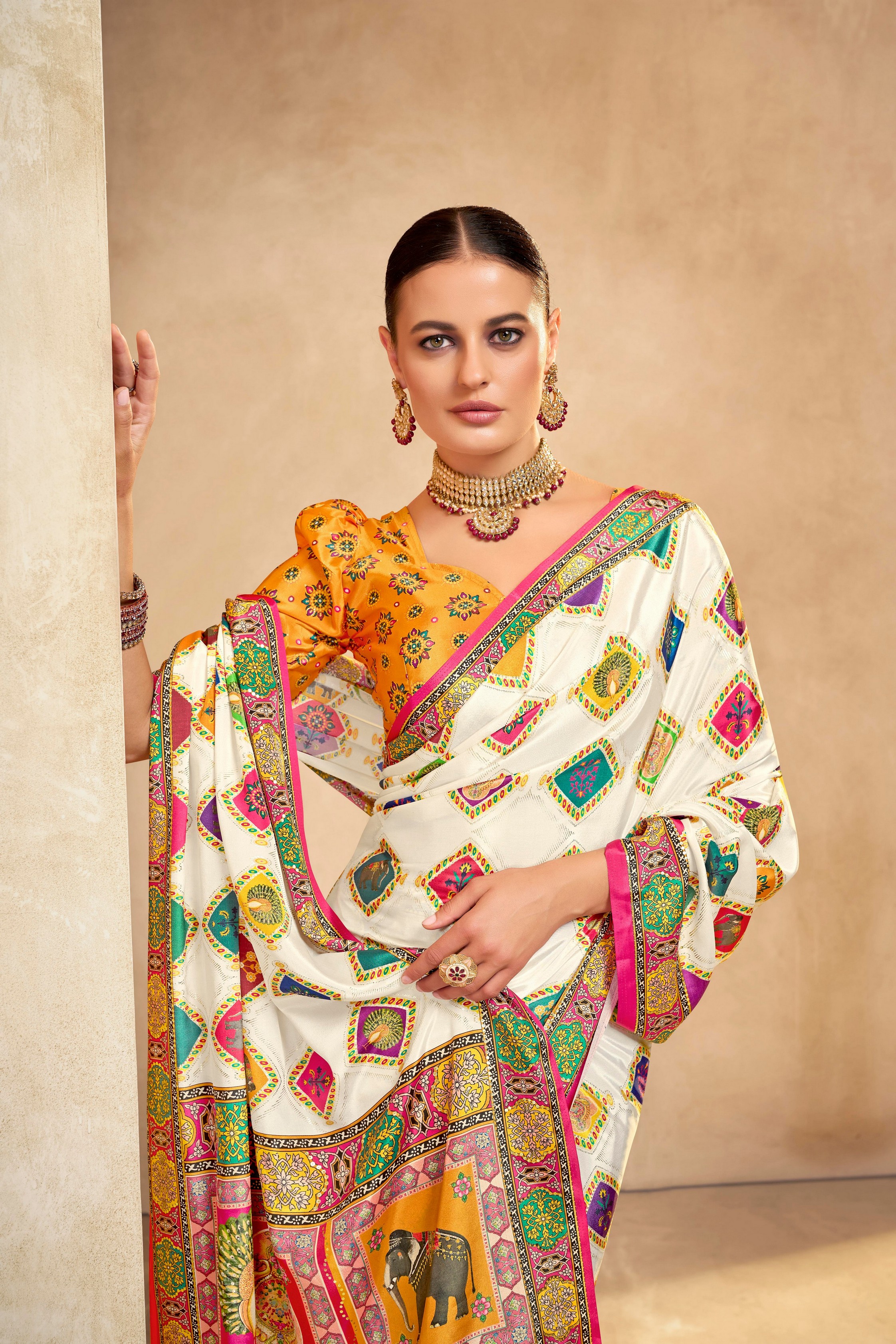 Off White Color Crepe Silk Fabric Position Digital Foil Printed Saree