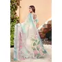 Off White Color Linen Cotton Fabric Beautiful Festive Special Saree