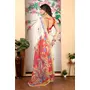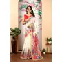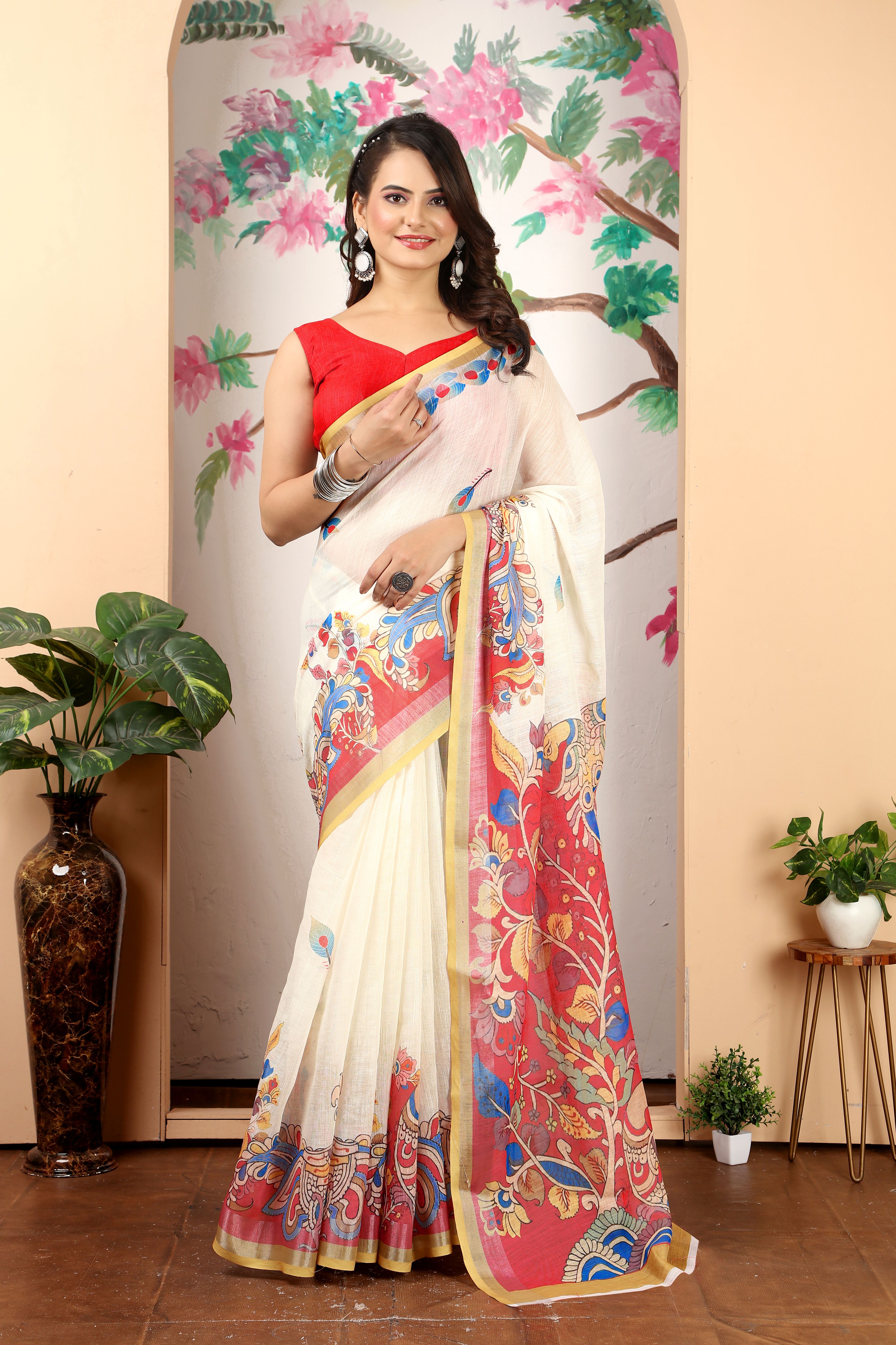 Off White Color Linen Cotton Fabric Beautiful Printed Saree