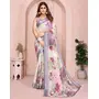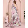 Off White Color Linen Cotton Fabric Festive Looks Printed Saree