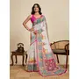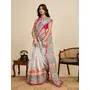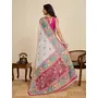 Off White Color Linen Fabric Beautiful Printed Ceremonial Saree