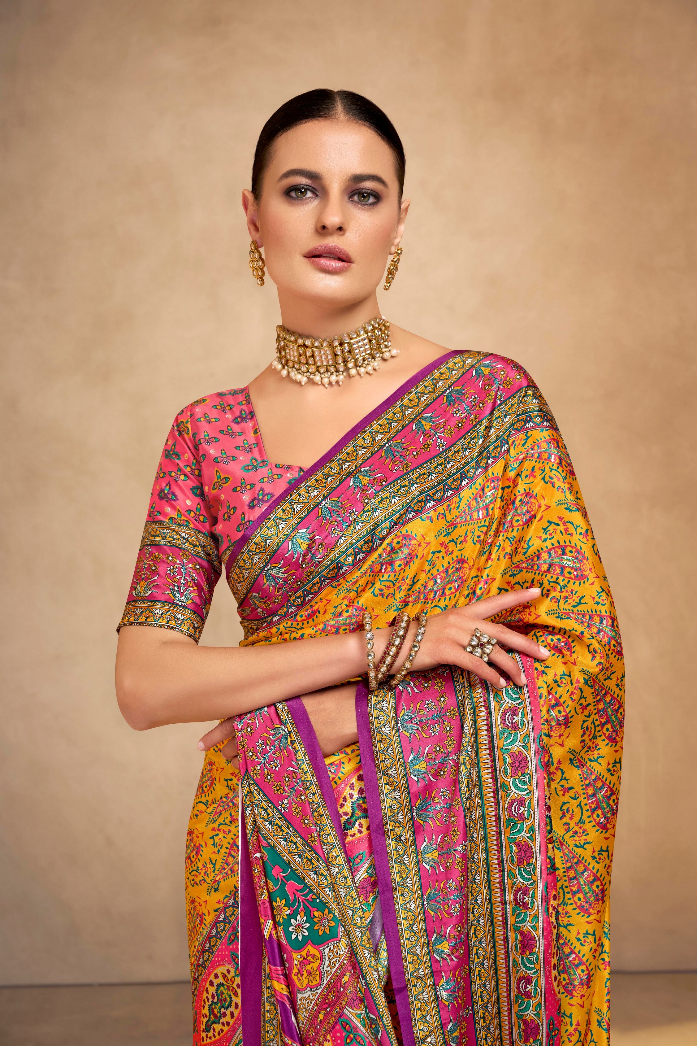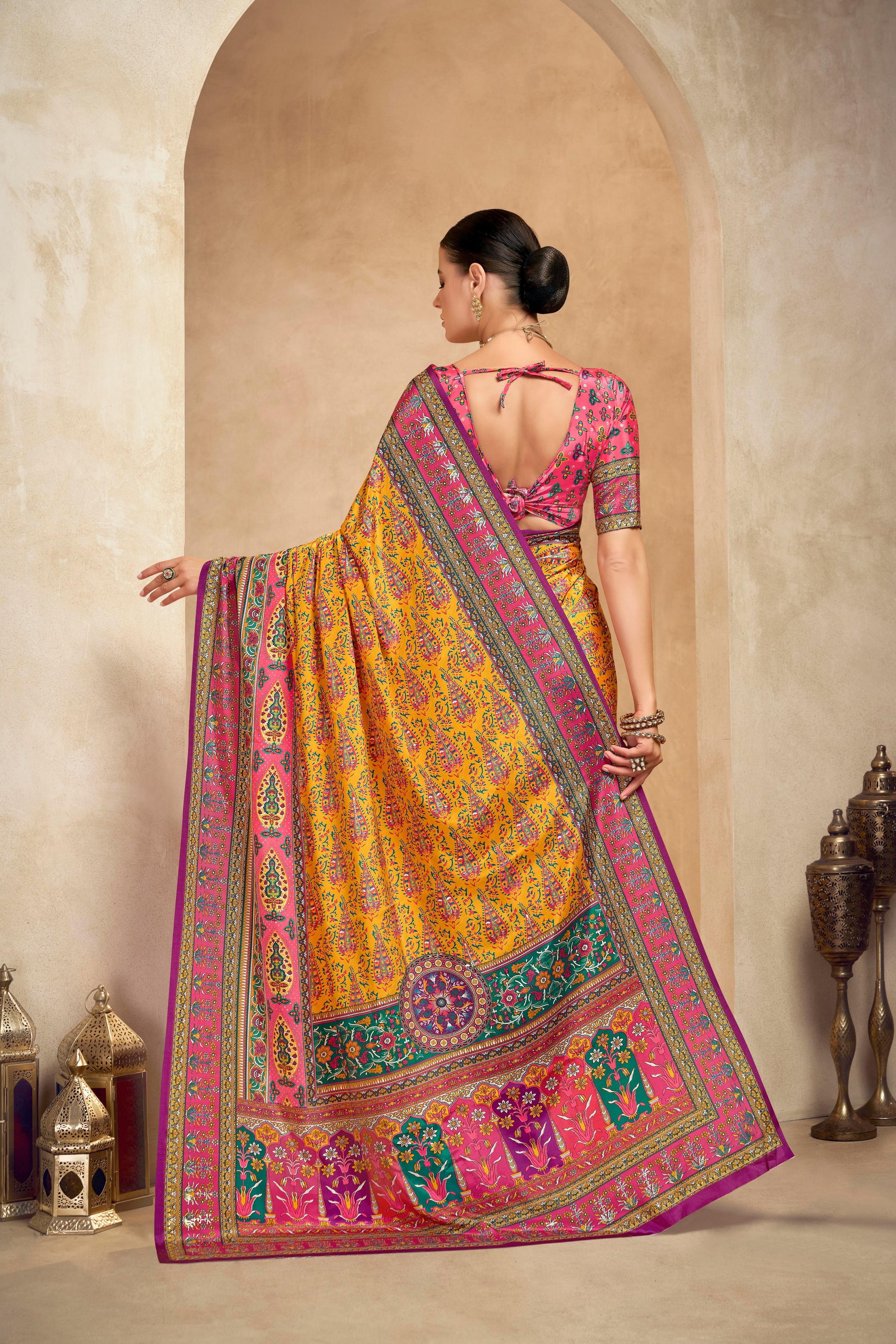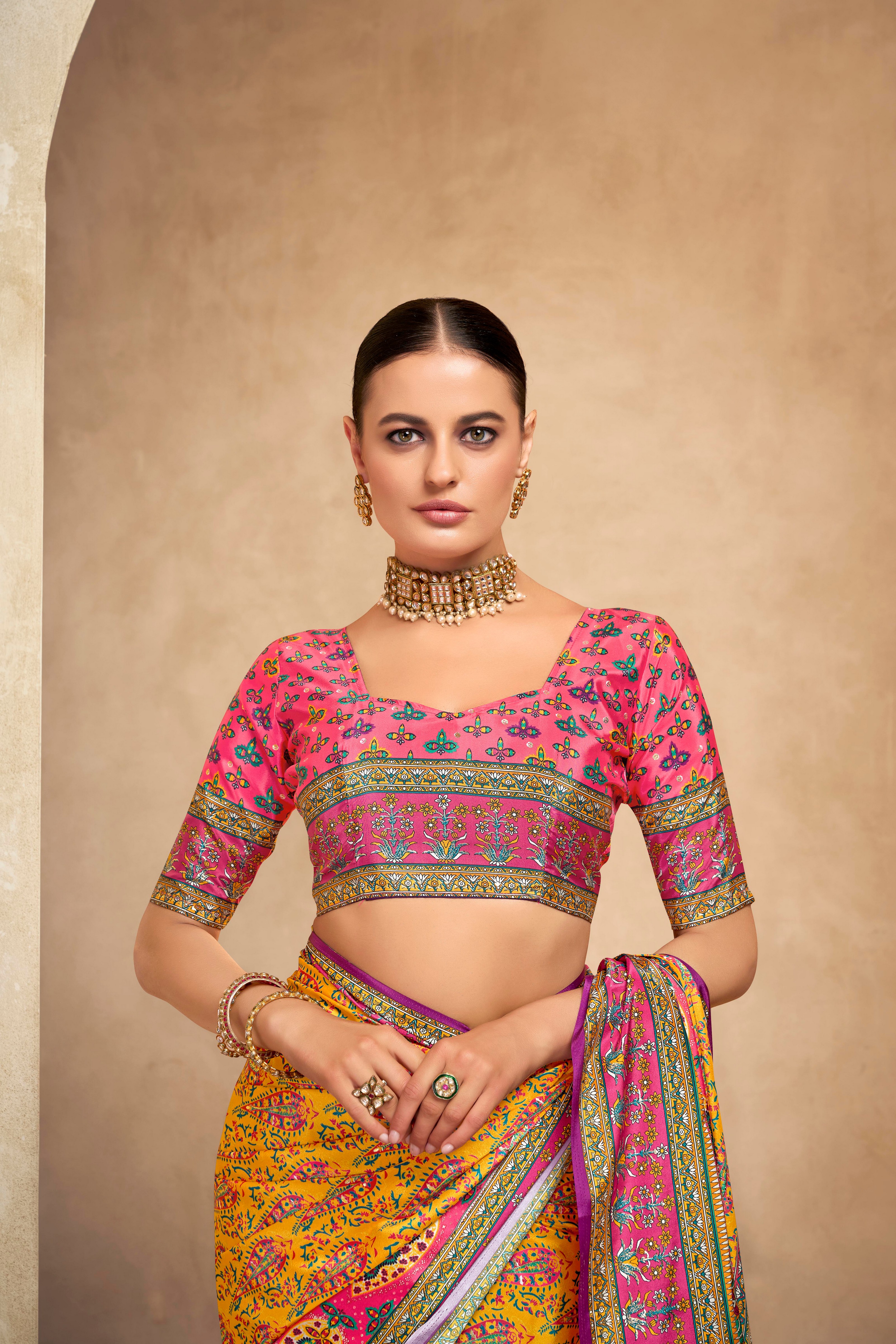 Orange Color Crepe Silk Fabric Position Digital Foil Printed Saree