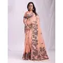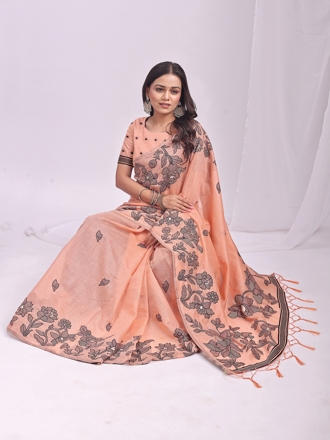 Orange Color Linen Cotton Fabric Wevon Thread Designer Festive Sophisticated Saree