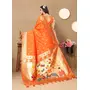Orange Color Paithani Silk Woven Meenakari Jacquard Designer Traditional Rich Ethnic Saree