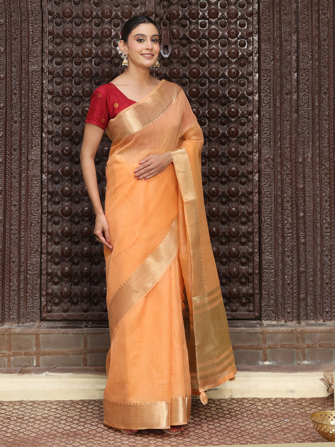 Orange Color Rich Ethnic Cotton Based Saree with Rich Woven Designer Looks