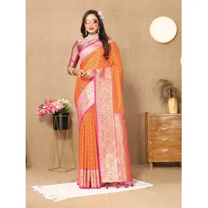 Orange Color Soft Silk Fabric Ethnic...