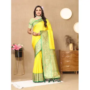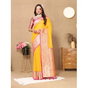 Yellow Color Graceful Woven Meenakari...