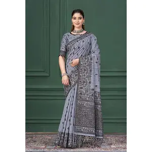Blue Color Warli Silk Fabric Warli...